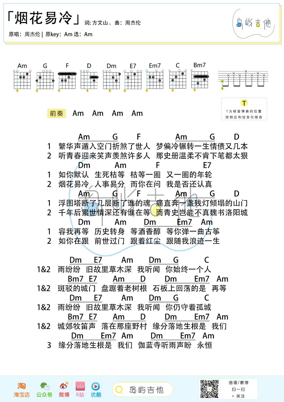 当前位置:琴谱网>吉他弹唱>烟花易冷