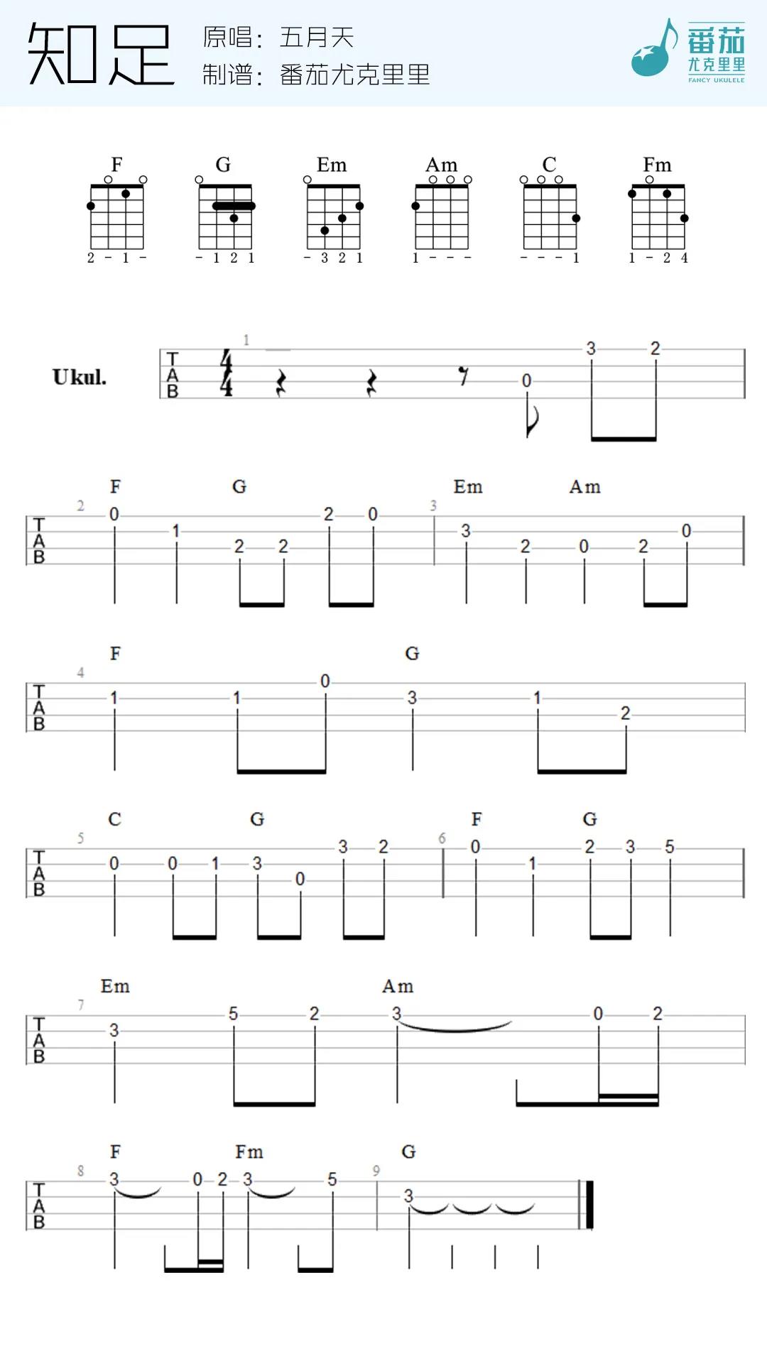 曲谱介绍: 五月天《知足()》吉他独奏谱,共有1张高清图谱,免翻页排版设计。
