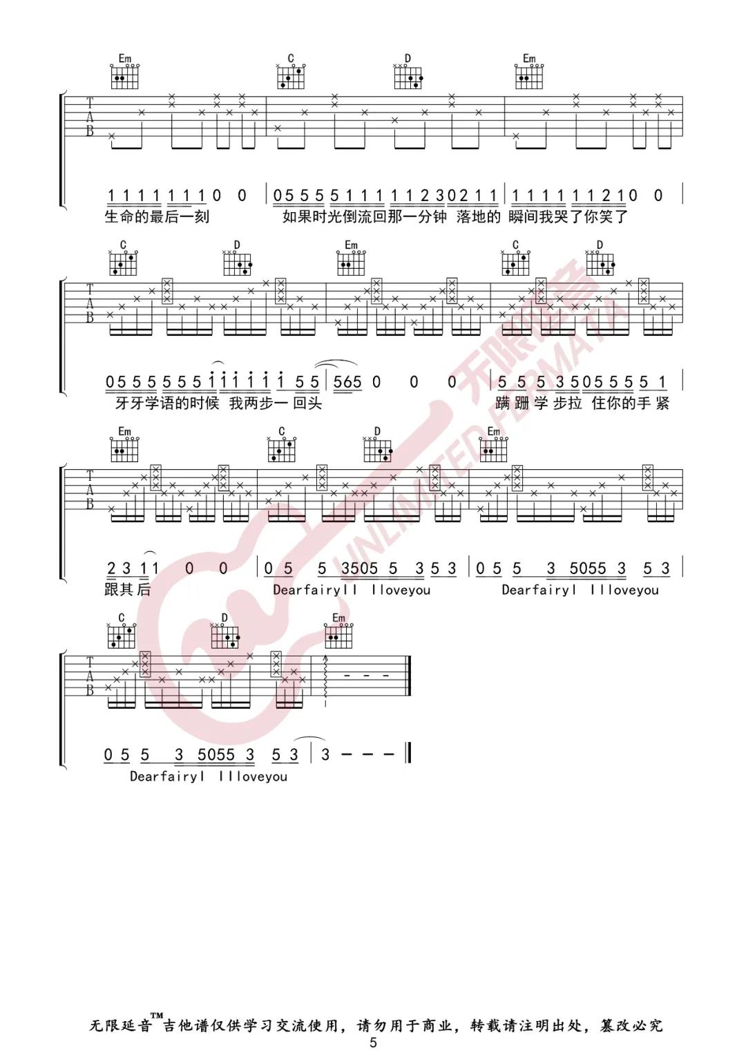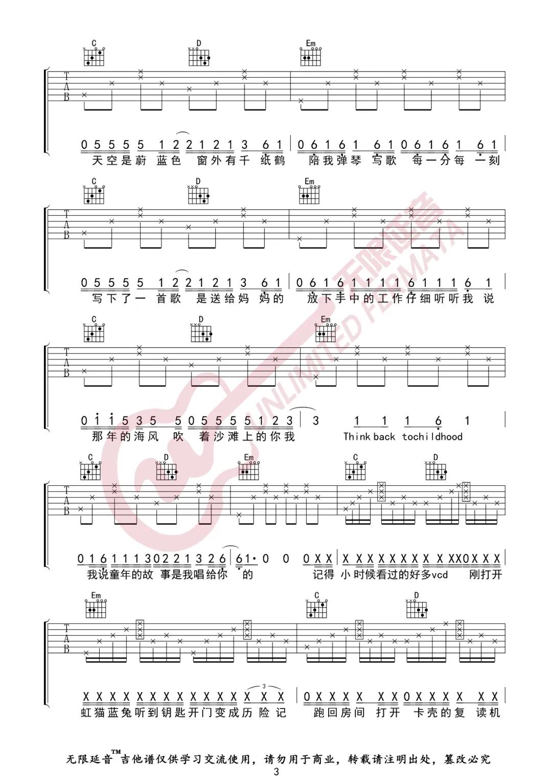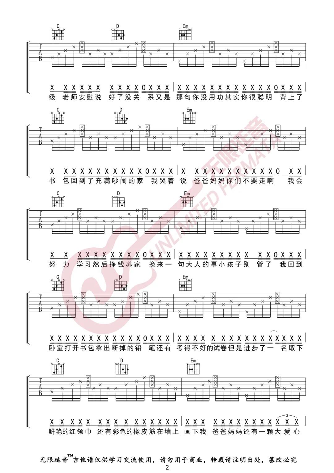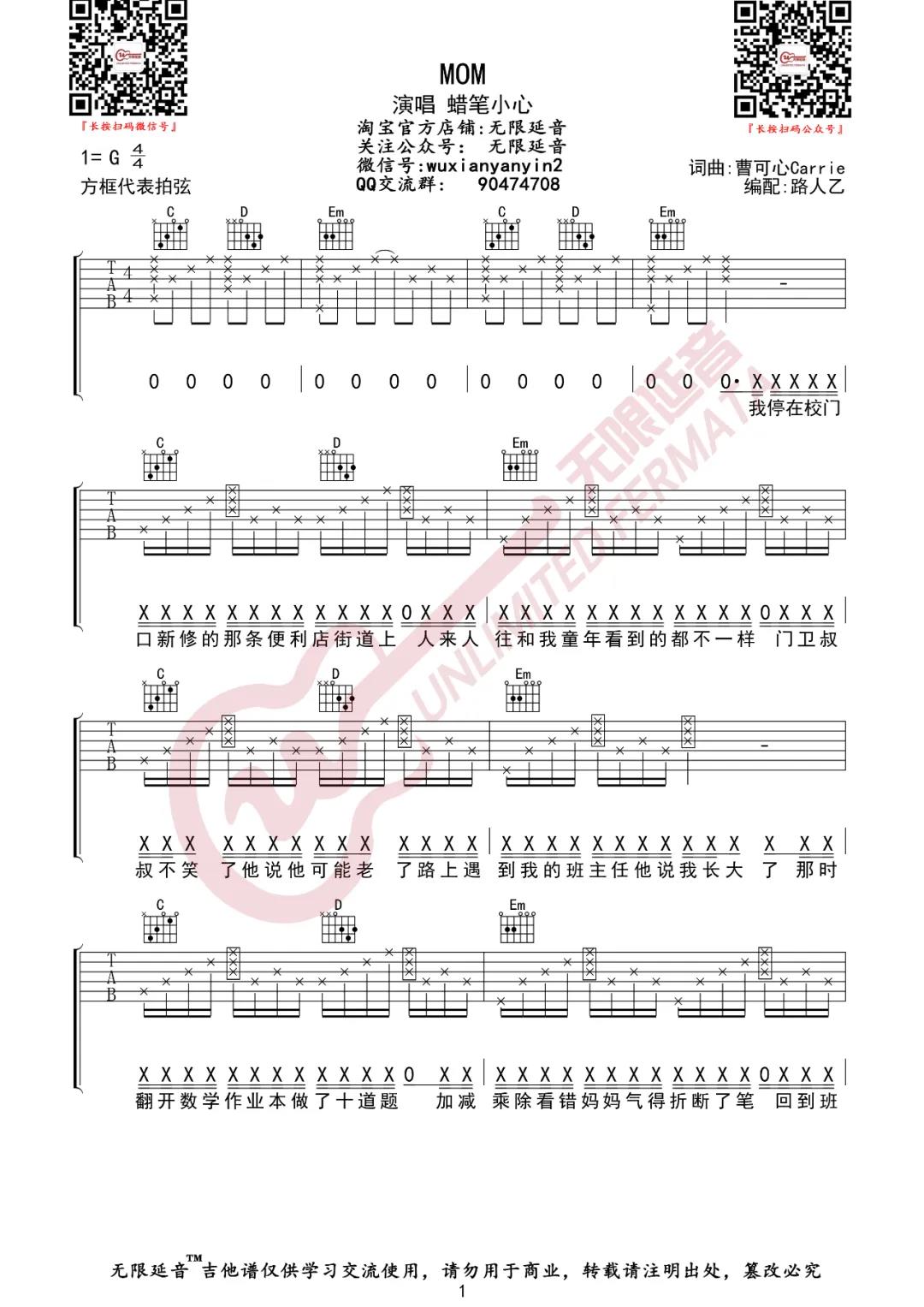 曲谱介绍: 蜡笔小心《MOM》吉他弹唱谱,采用G调指法编配,共有5张高清图谱。