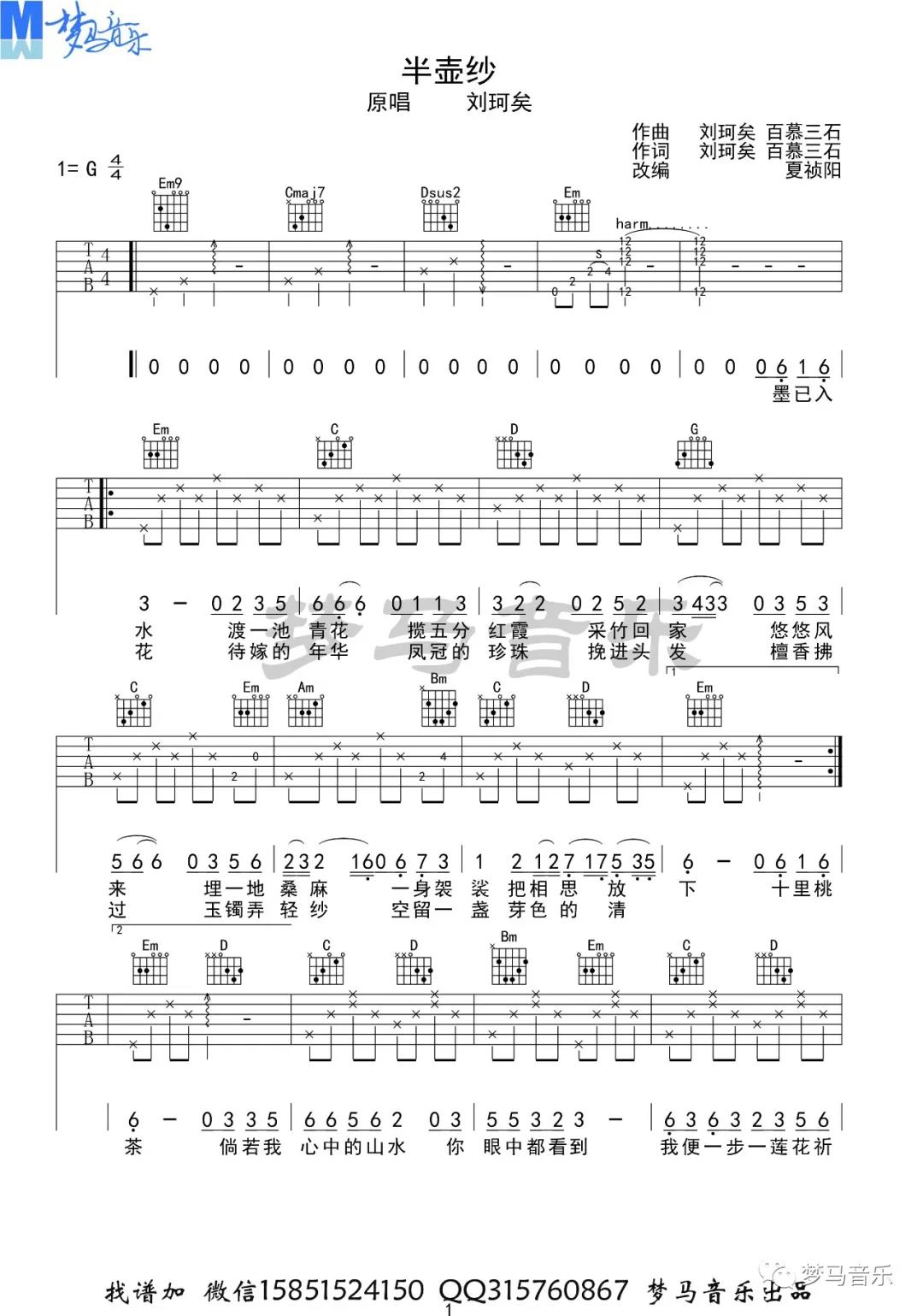 曲谱介绍: 刘珂矣《半壶纱》吉他弹唱谱,采用G调指法编配,共有3张高清图谱。