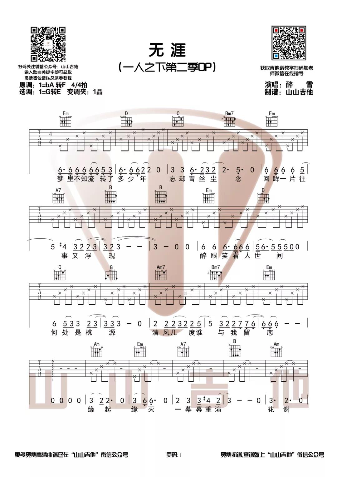 曲谱介绍: 第二季主题曲《无涯》