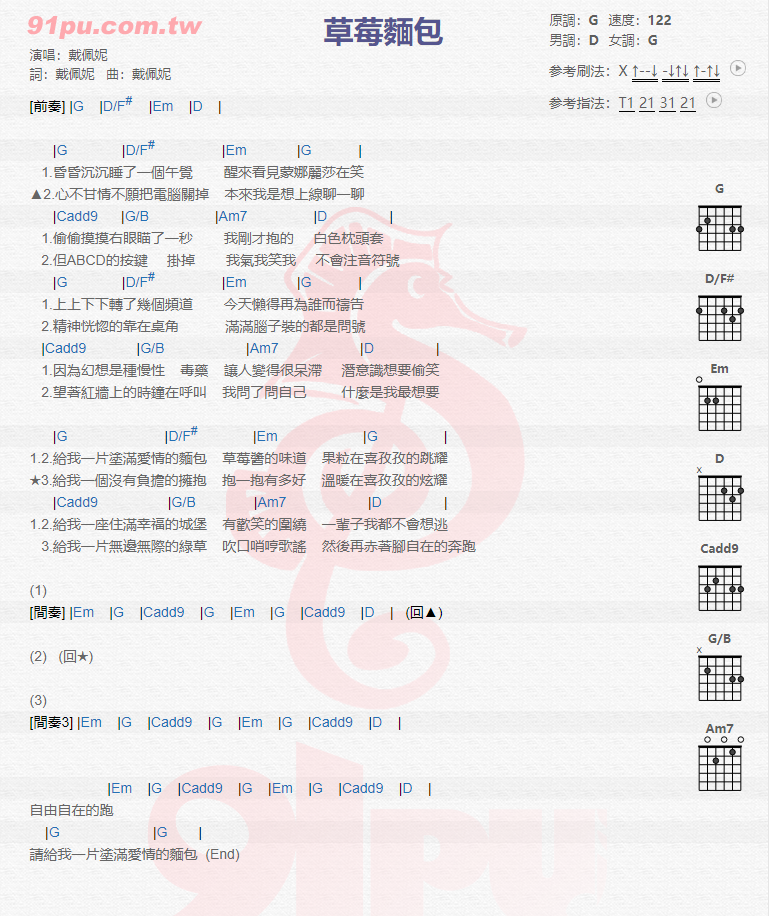 草莓面包吉他谱 - 戴佩妮 - G调吉他弹唱谱