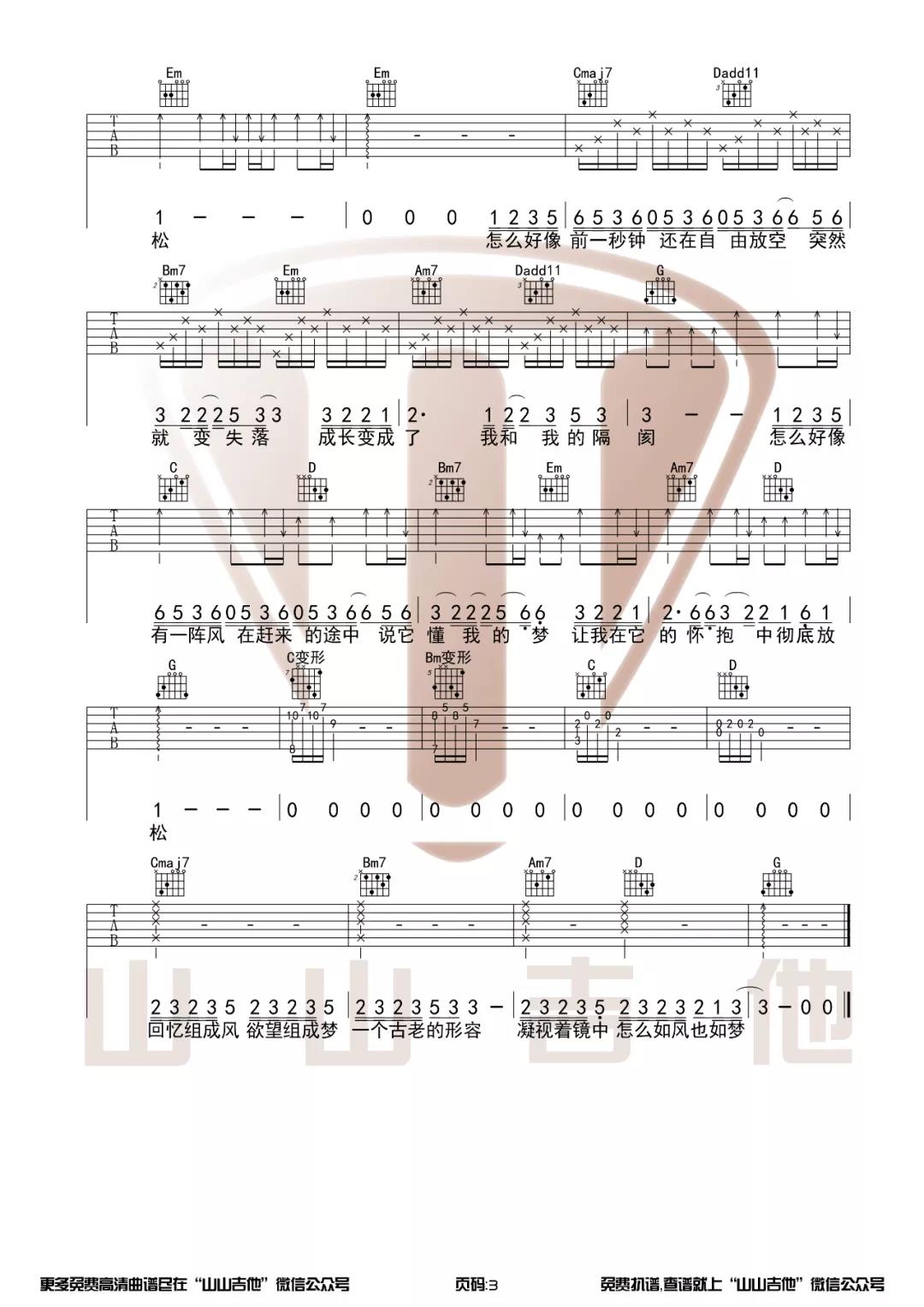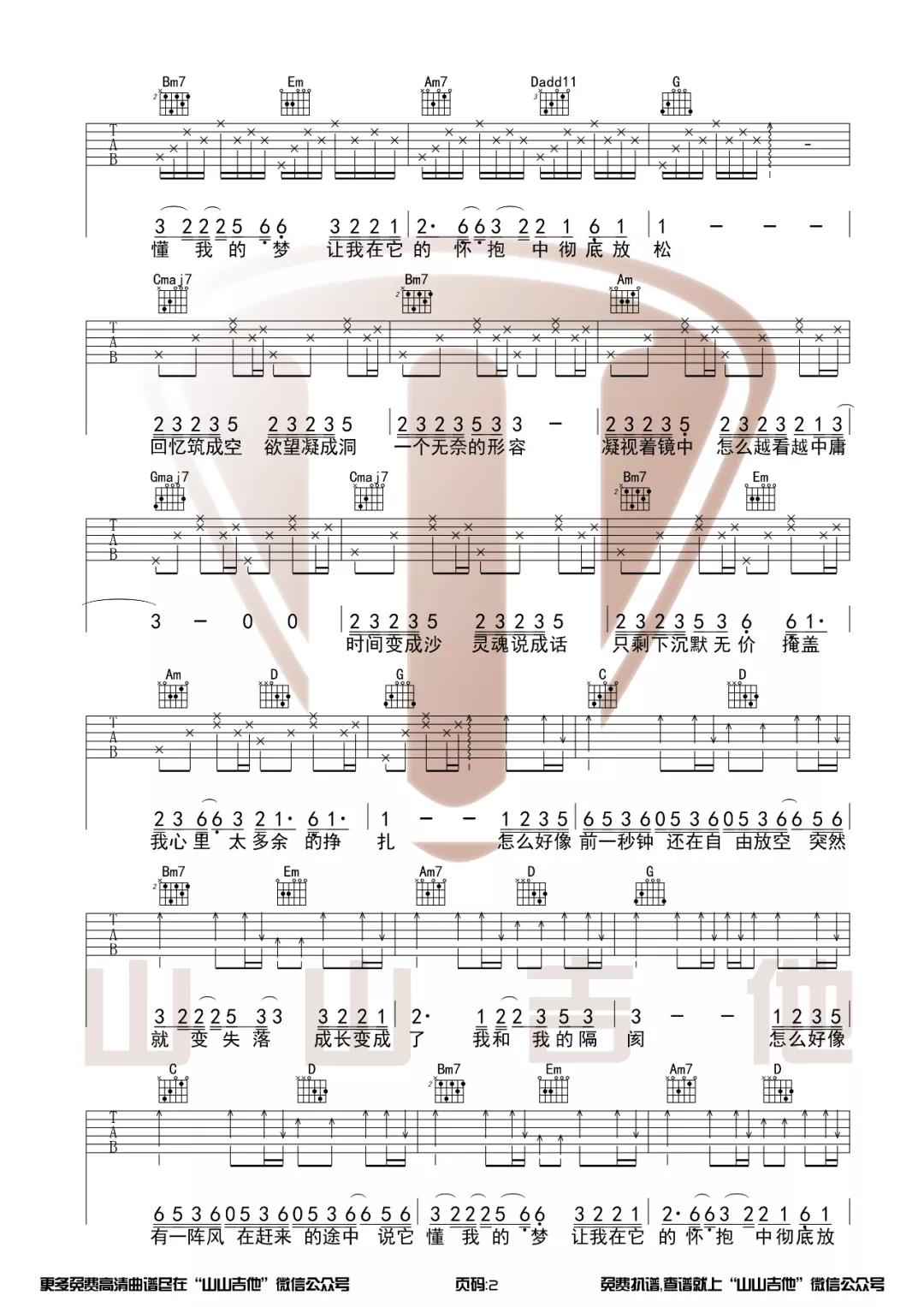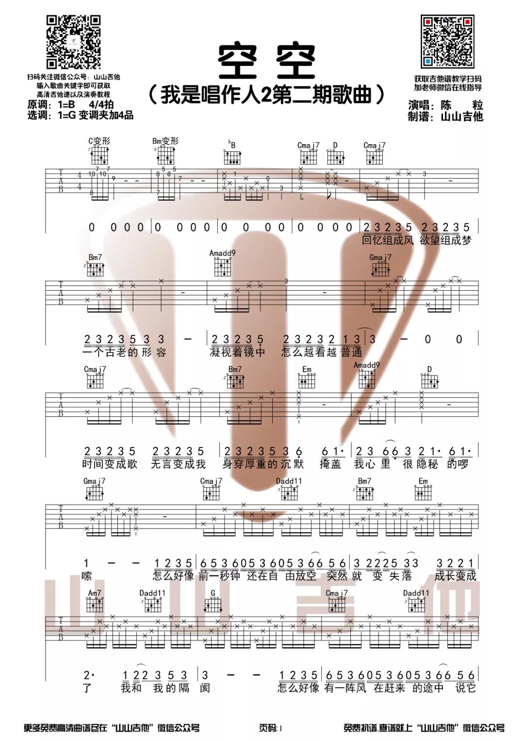 曲谱介绍: 陈粒《空空》吉他弹唱谱,采用G调指法编配,共有3张高清图谱。