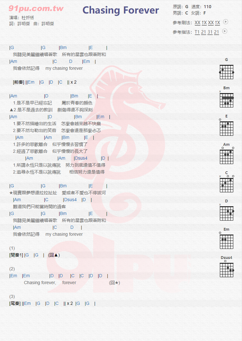 Chasing Forever吉他谱 - 杜忻恬 - G调吉他弹唱谱