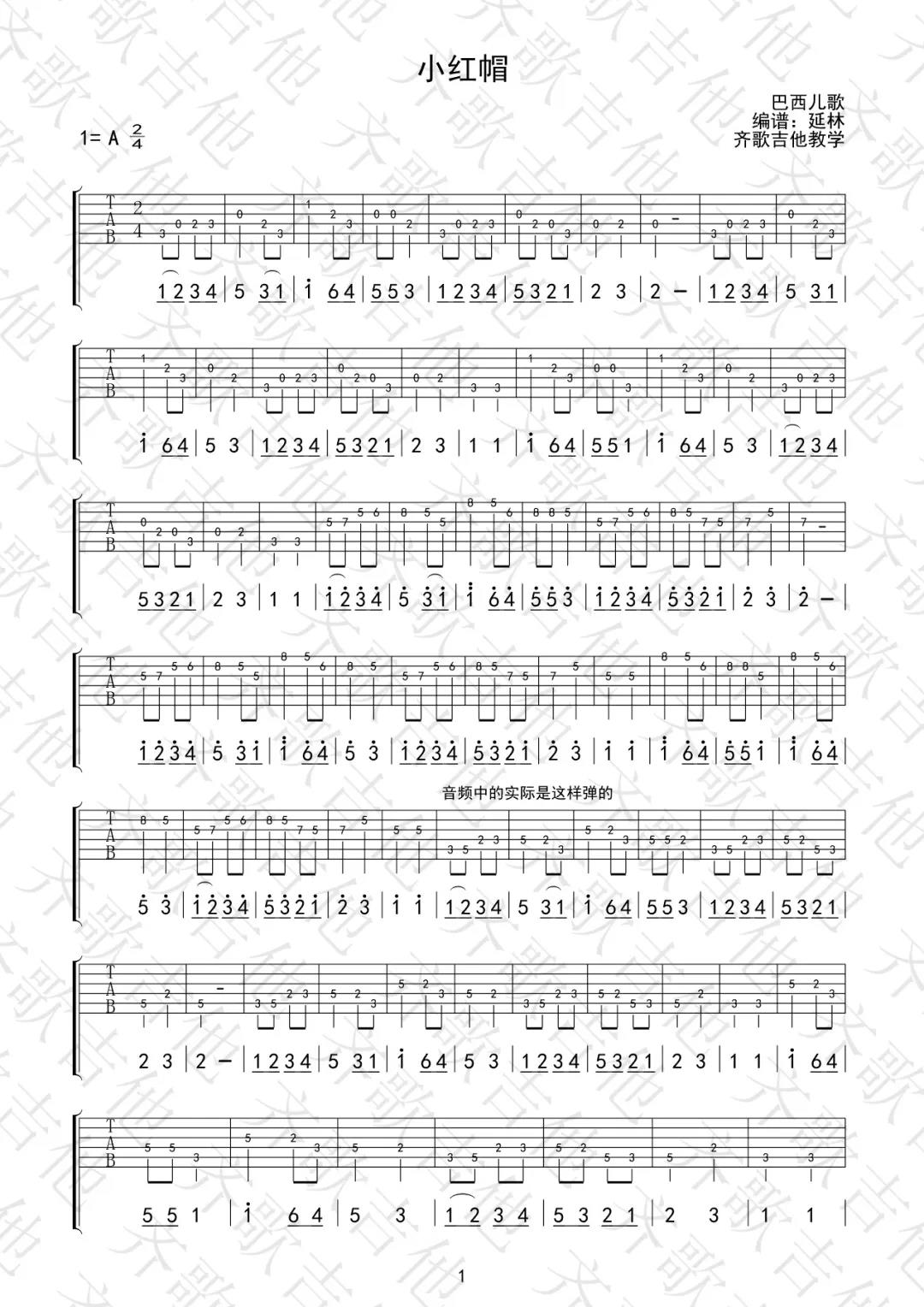 曲谱介绍: 儿童歌曲《小红帽()》吉他独奏谱,采用A调指法编配,共有1张高清图谱,免翻页排版设计。