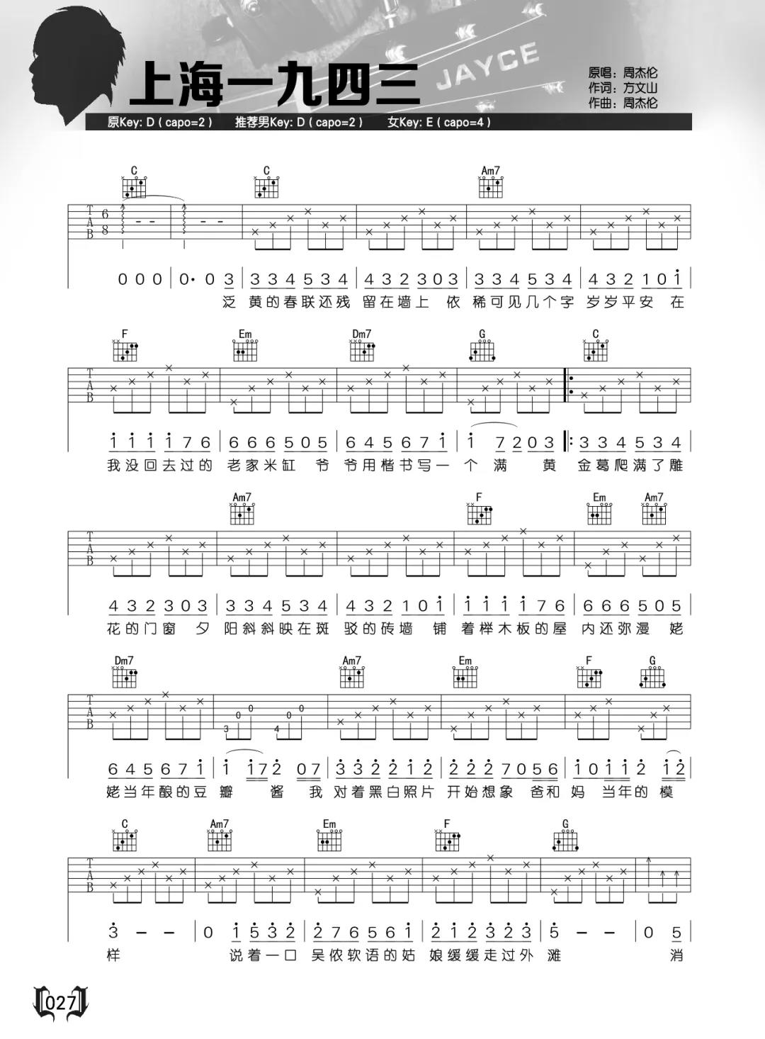 上海1943吉他谱 - 周杰伦 - D调吉他弹唱谱