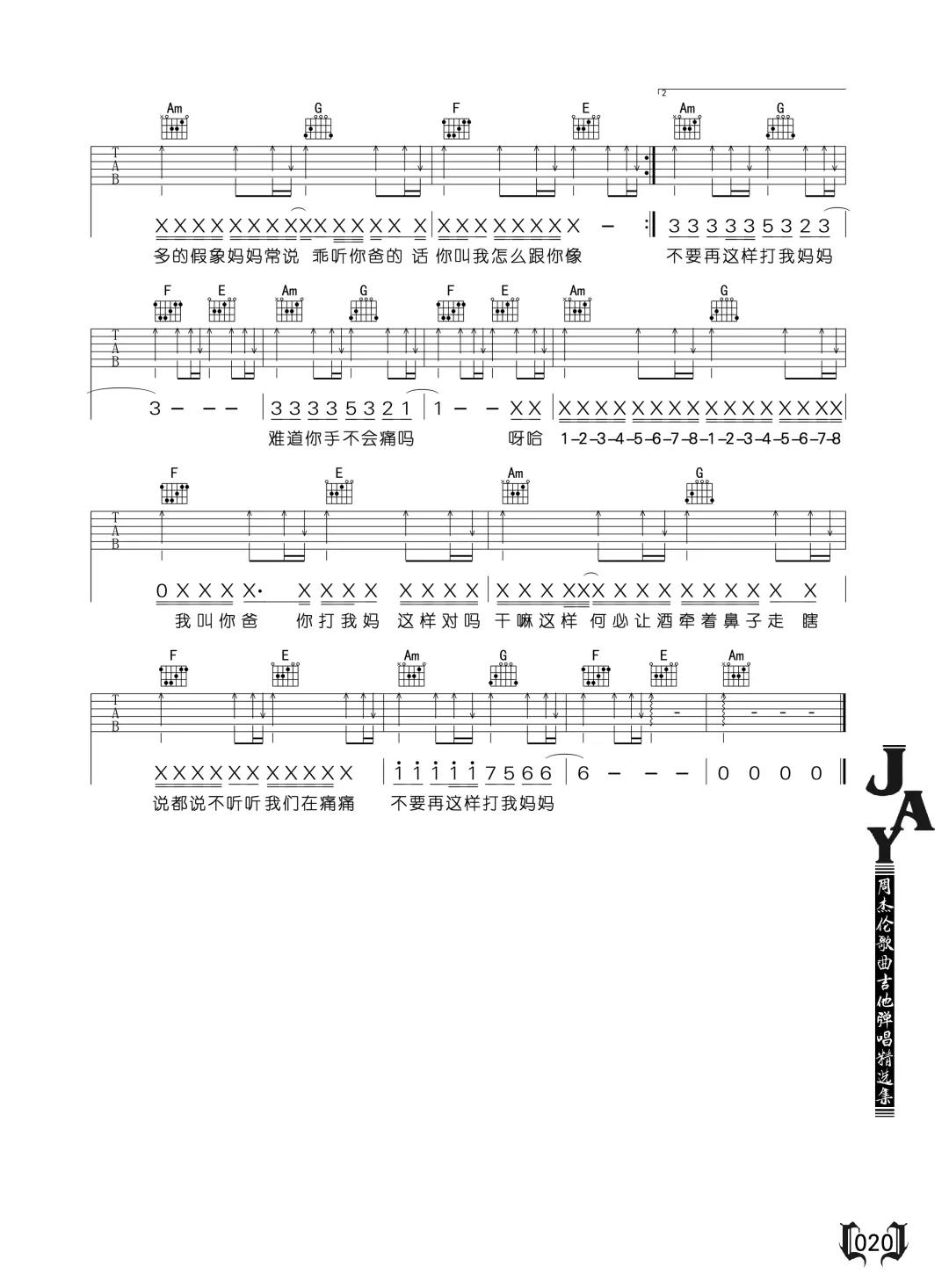 曲谱介绍: 周杰伦《爸我回来了》吉他弹唱谱,采用F调指法编配,共有3张高清图谱。