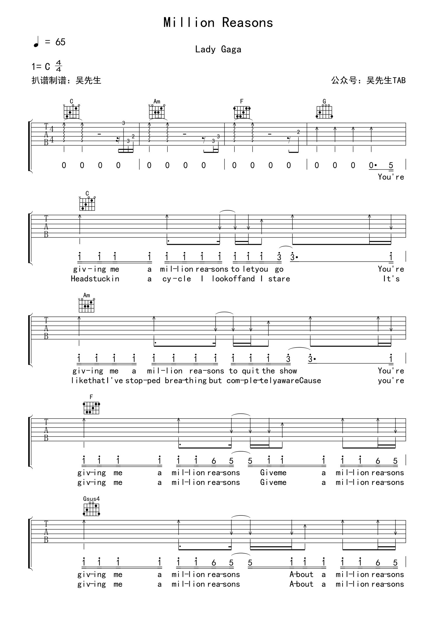 • Million Reasons吉他谱 - Lady GaGa - C调吉他弹唱谱第1张
