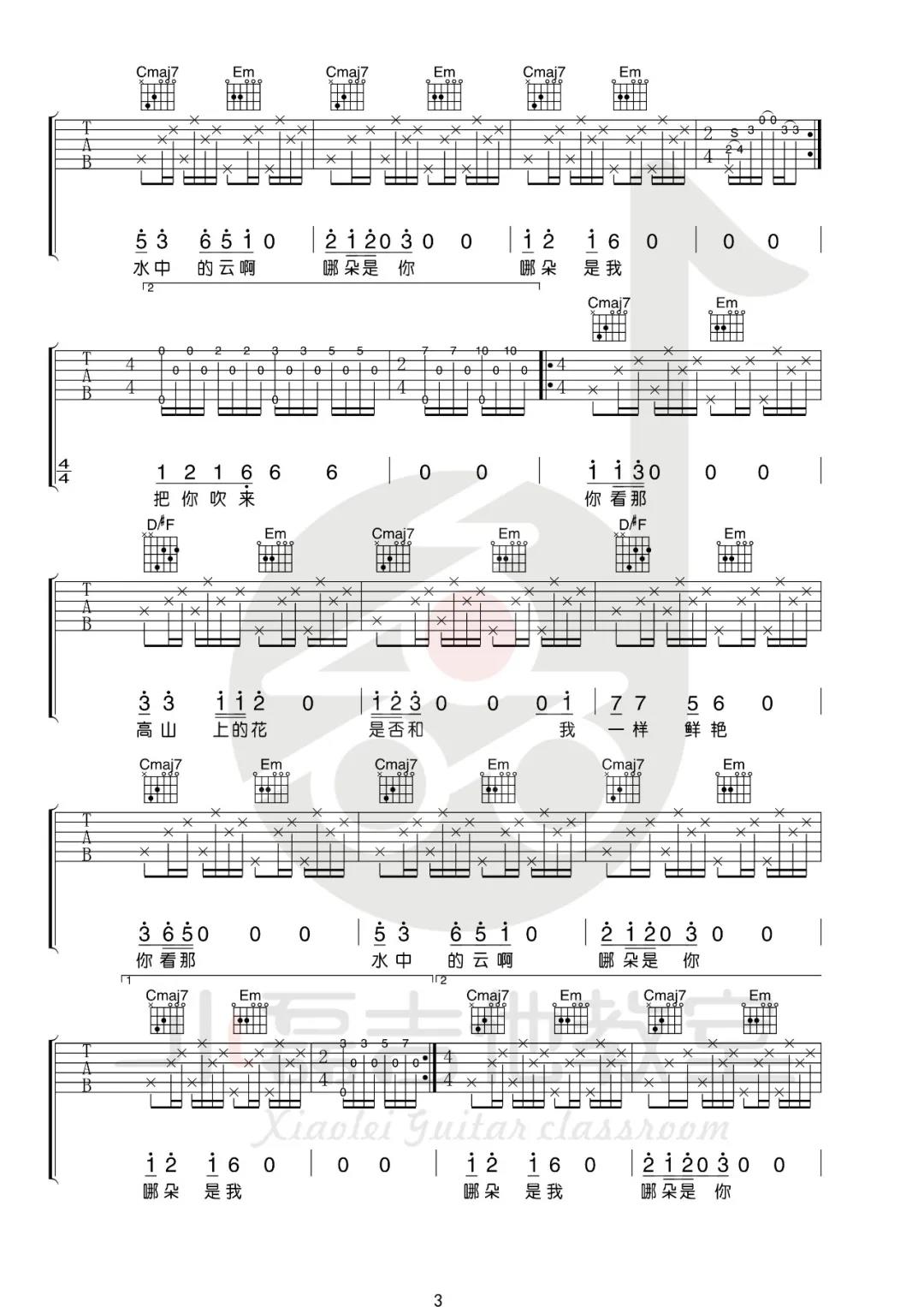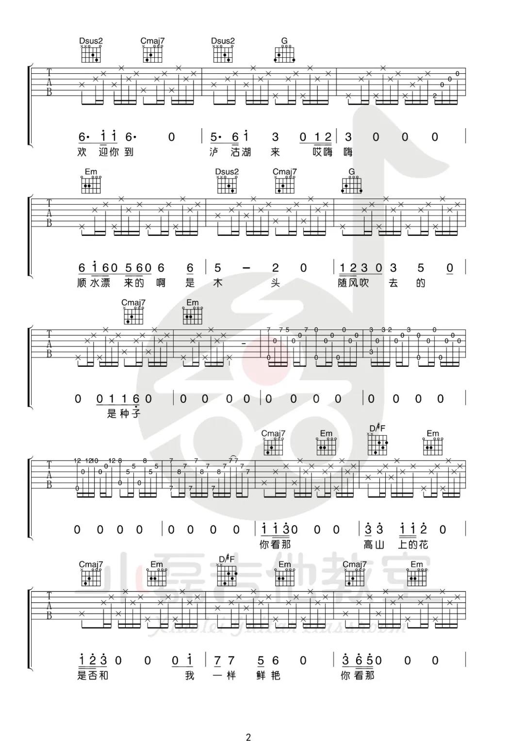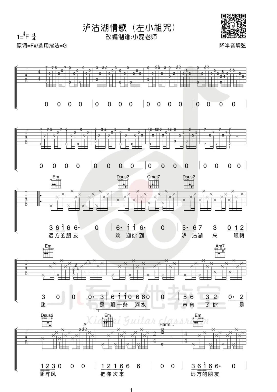 曲谱介绍: 左小祖咒《泸沽湖情歌》吉他弹唱谱,采用G调指法编配,共有4张高清图谱。