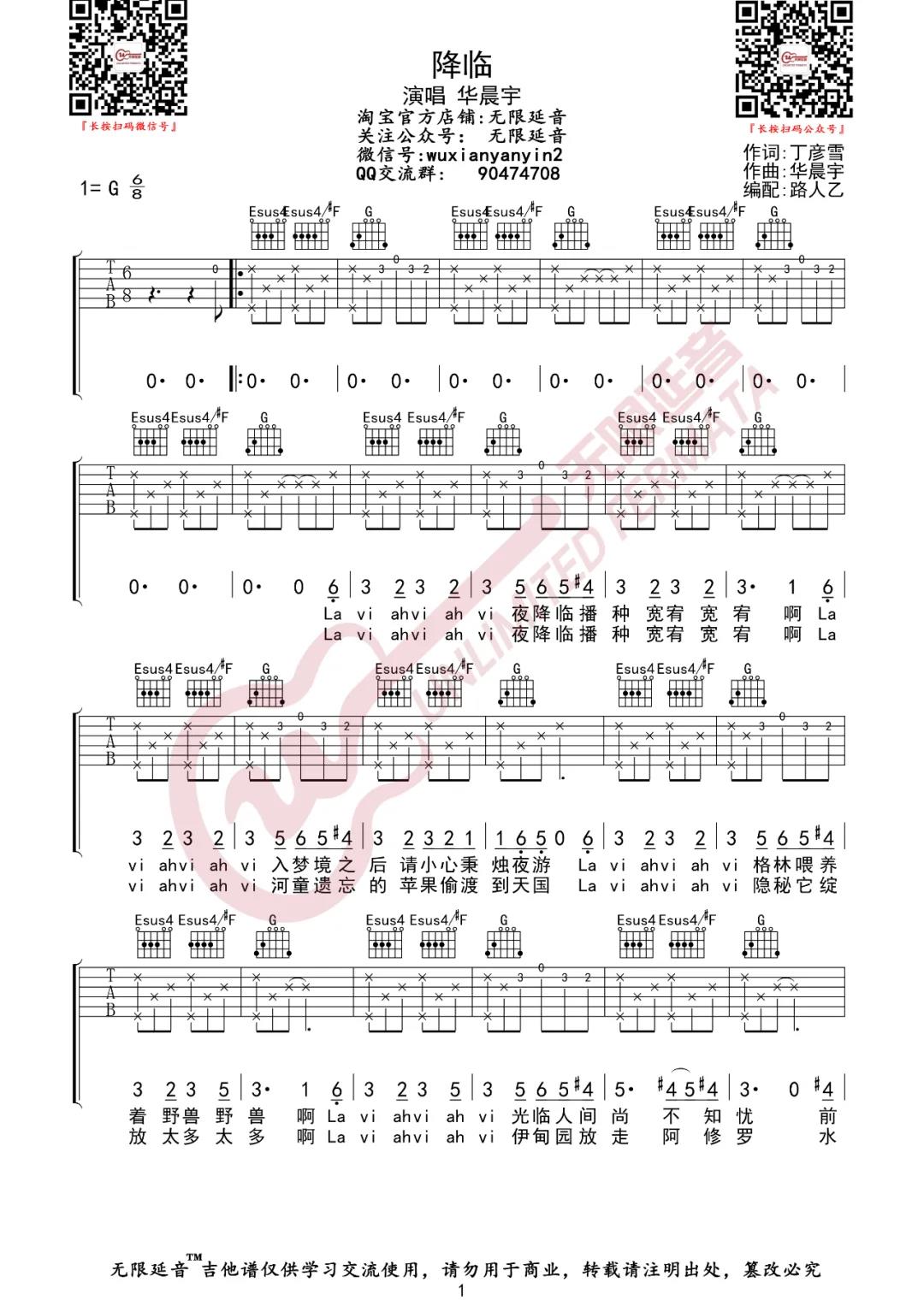 降临吉他谱 - 华晨宇 - G调吉他弹唱谱