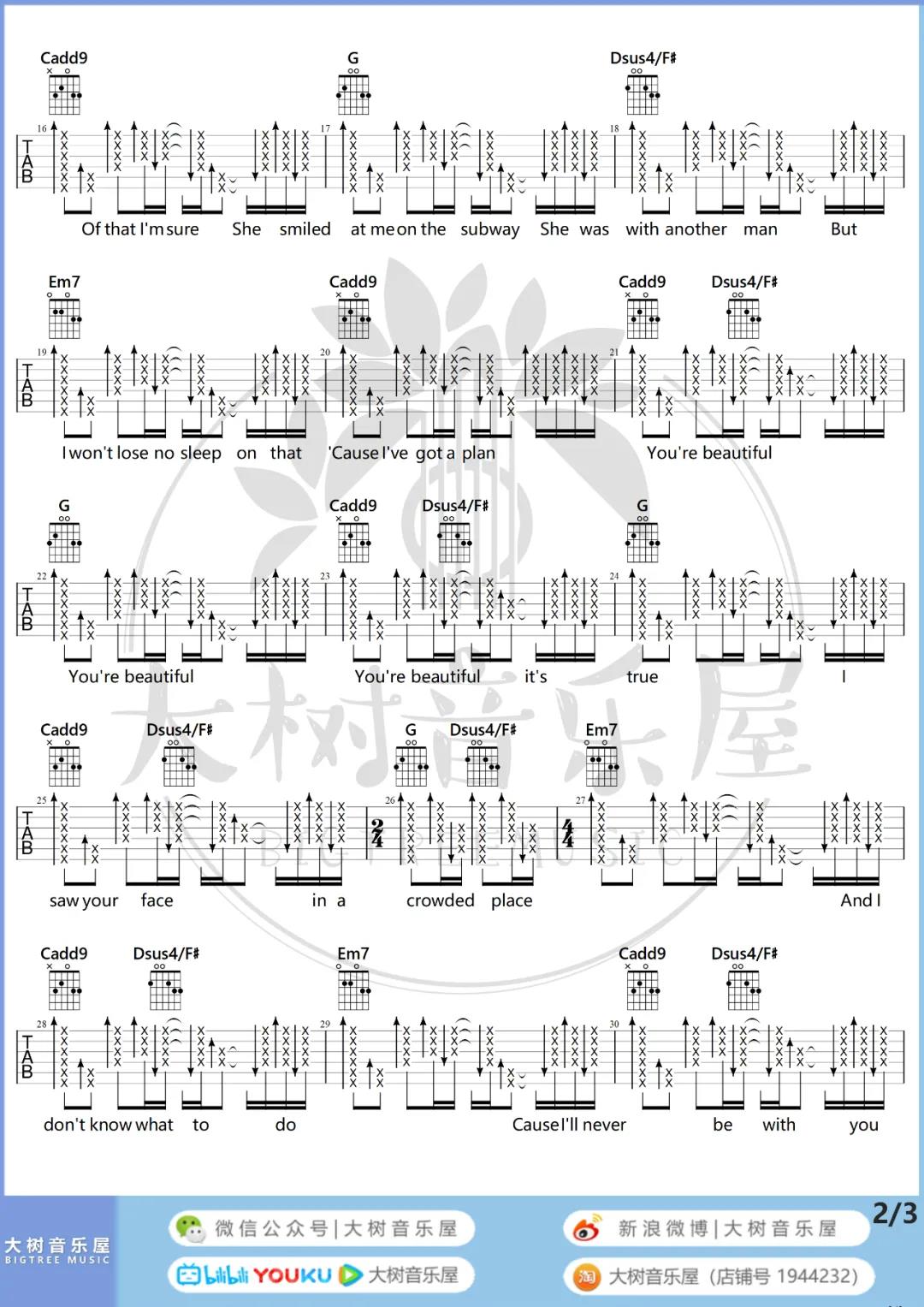 琴谱网为您精心推荐 You are beautiful 高清图谱