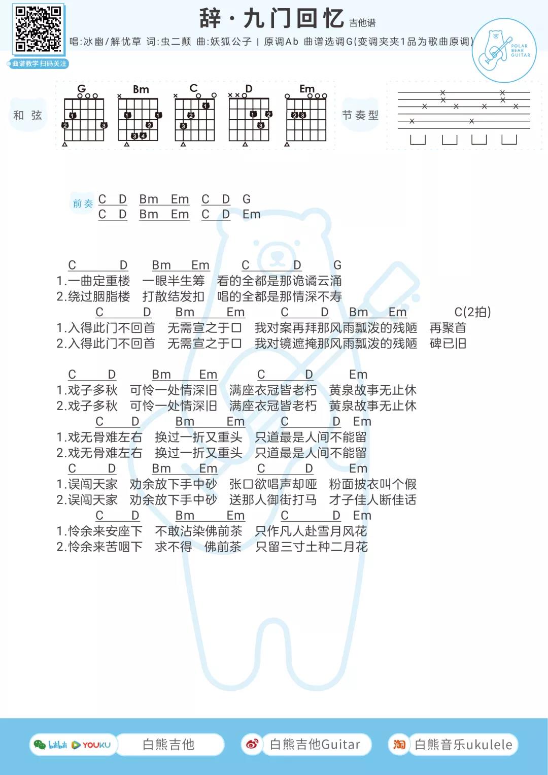 辞九门回忆吉他谱 - 冰幽,解忧草 - G调吉他弹唱谱