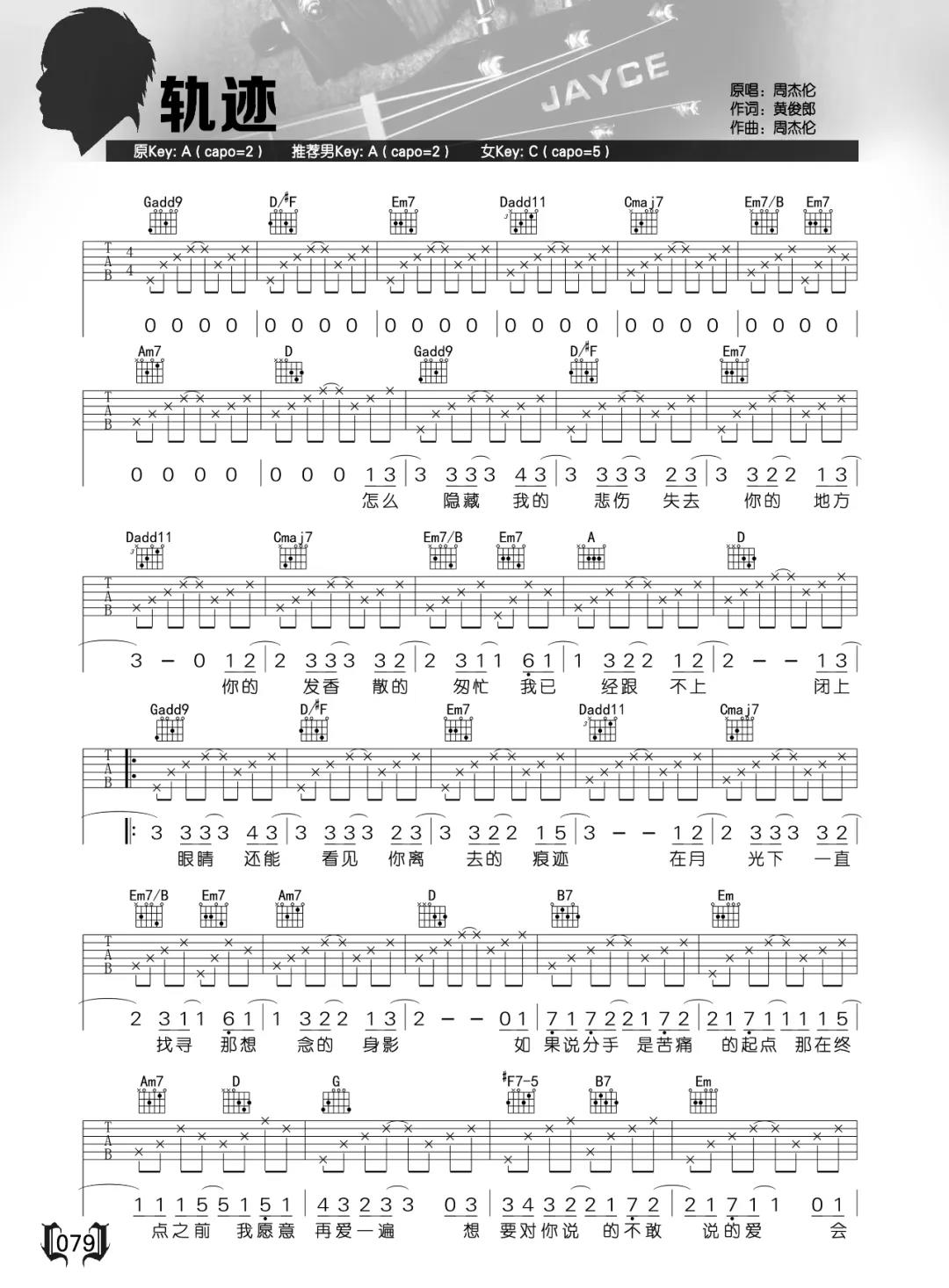 轨迹吉他谱 - 周杰伦 - A调吉他弹唱谱
