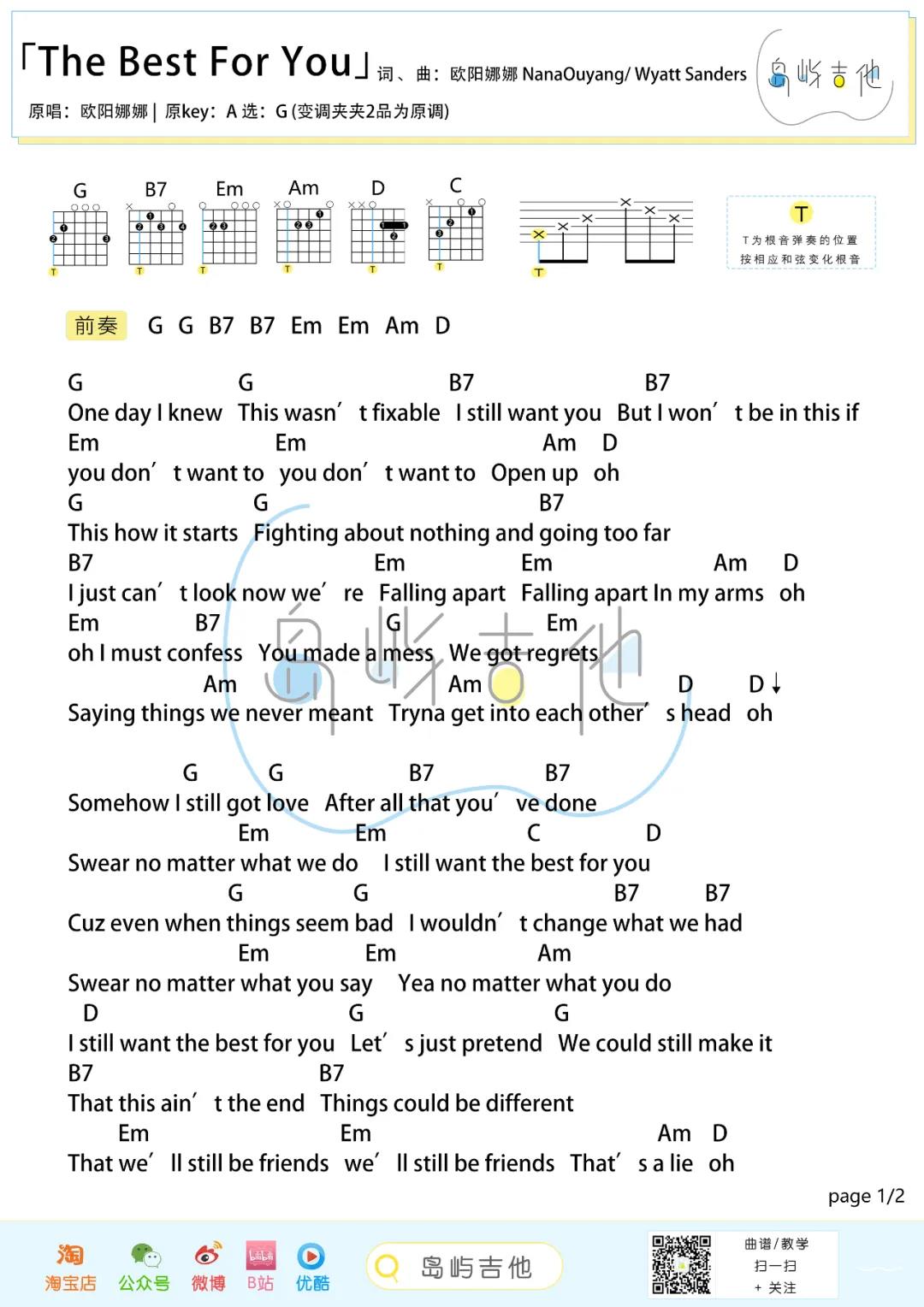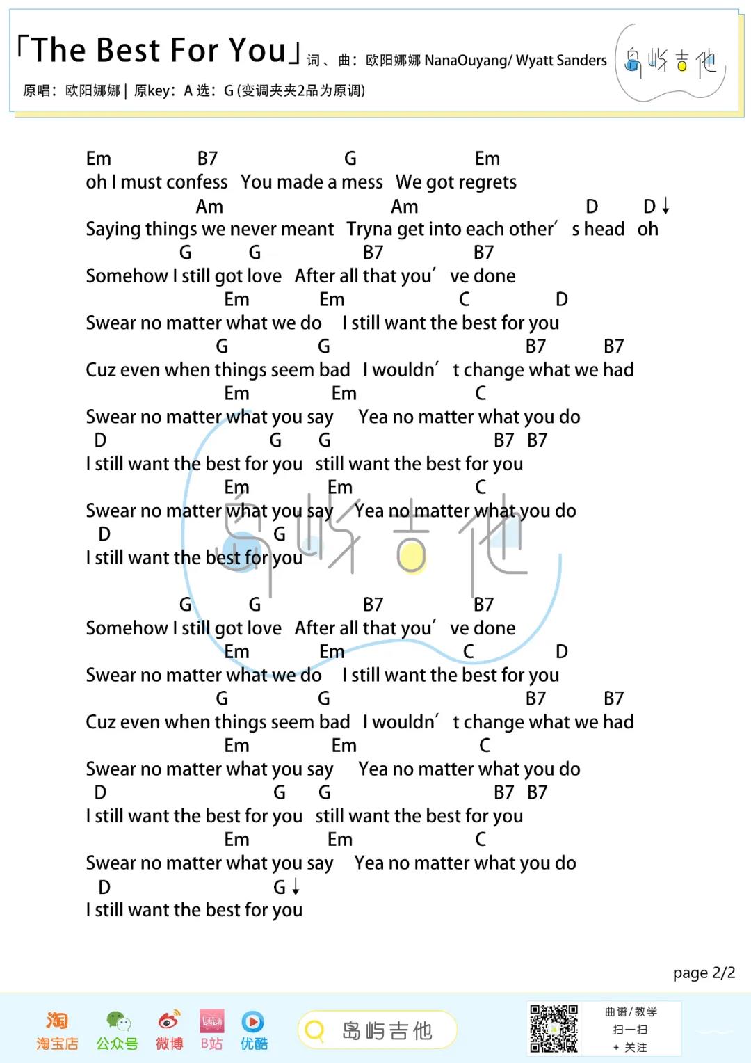 The Best For You吉他谱 - 欧阳娜娜 - G调吉他弹唱谱