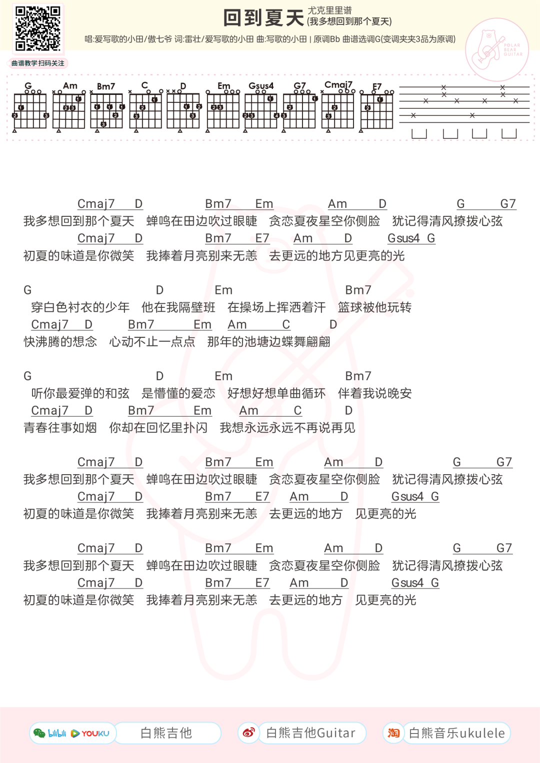 回到夏天吉他谱 - 爱写歌的小田,傲七爷 - G调吉他弹唱谱