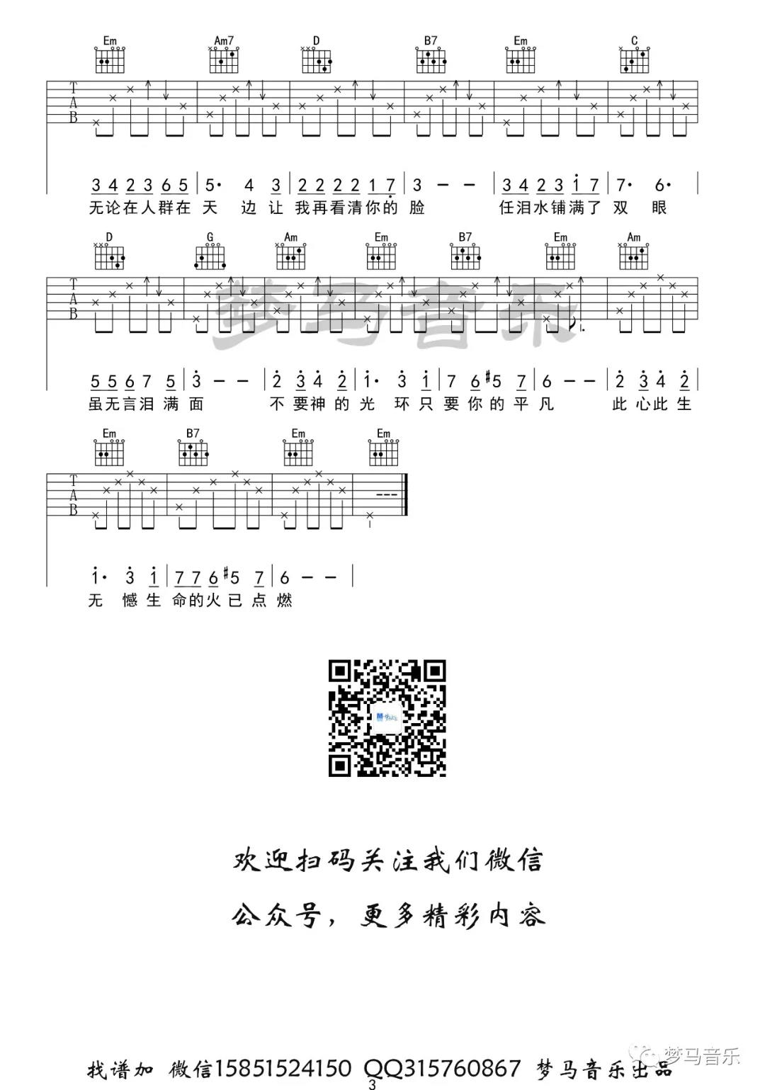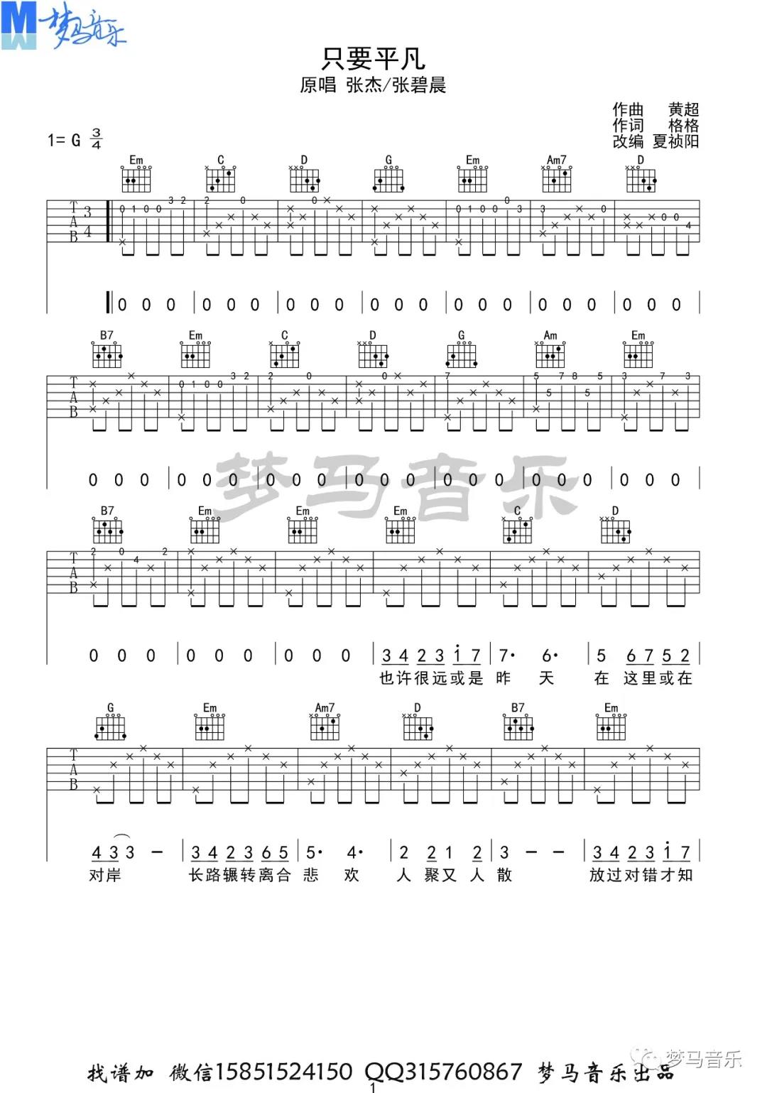 曲谱介绍: 张杰,张碧晨《只要平凡》吉他弹唱谱,采用G调指法编配,共有3张高清图谱。