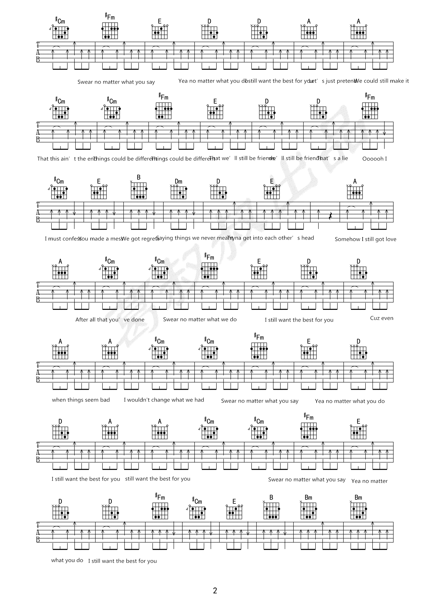 曲谱介绍: 欧阳娜娜《TheBestForYou》吉他弹唱谱,采用A调指法编配,共有3张高清图谱。
