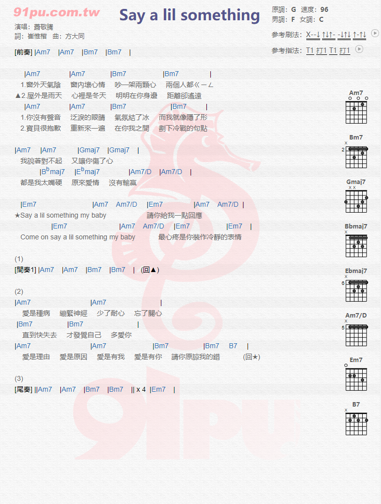 Say a lil something吉他谱 - 萧敬腾 - G调吉他弹唱谱
