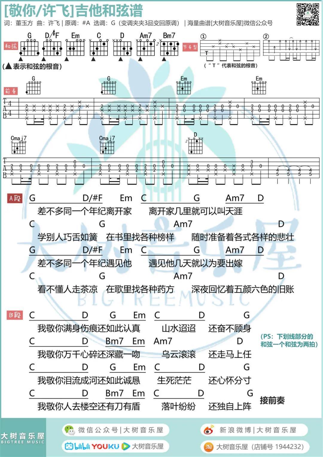 敬你吉他谱 - 许飞 - G调吉他弹唱谱
