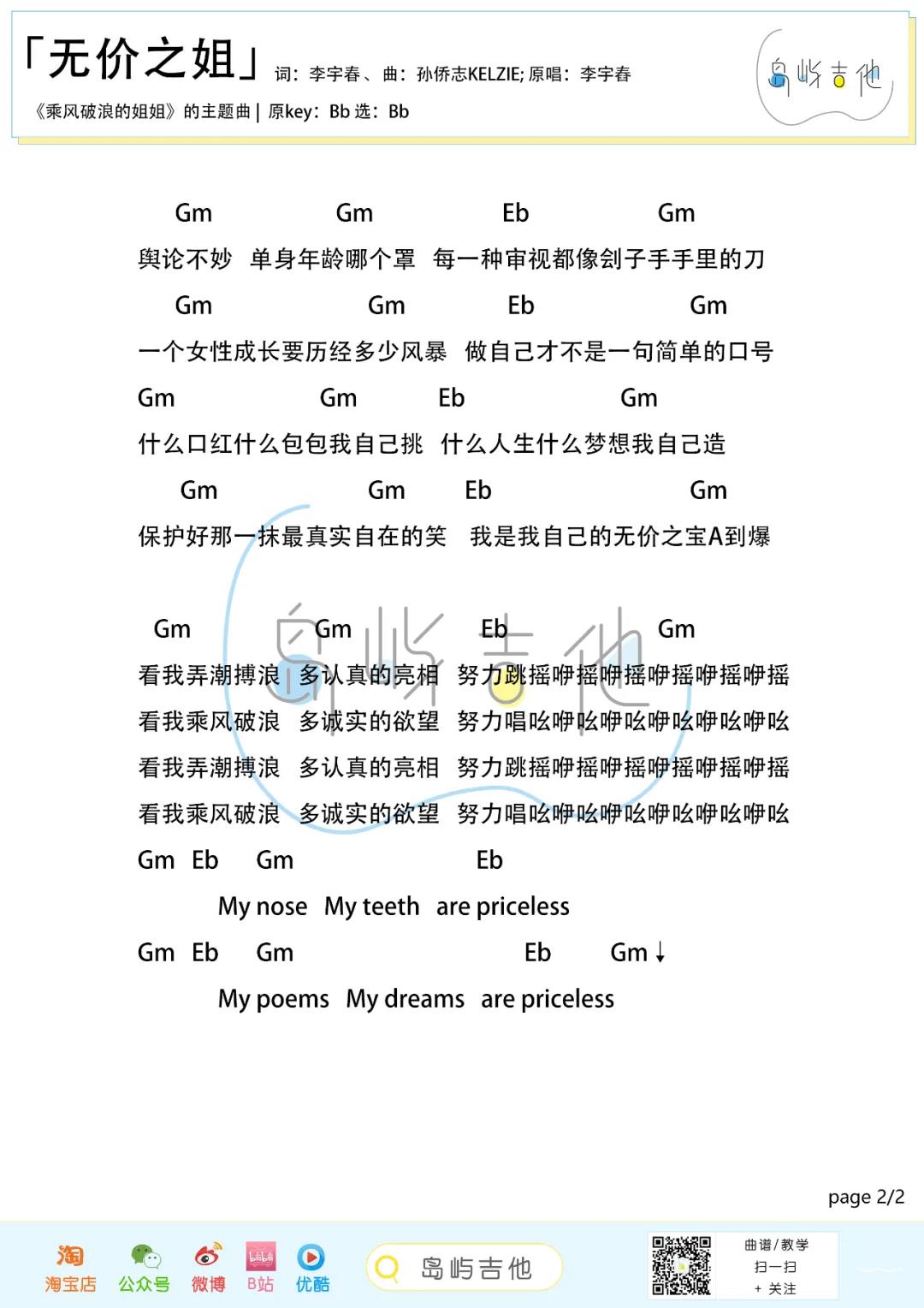 无价之姐吉他谱 - 李宇春 - B调吉他弹唱谱