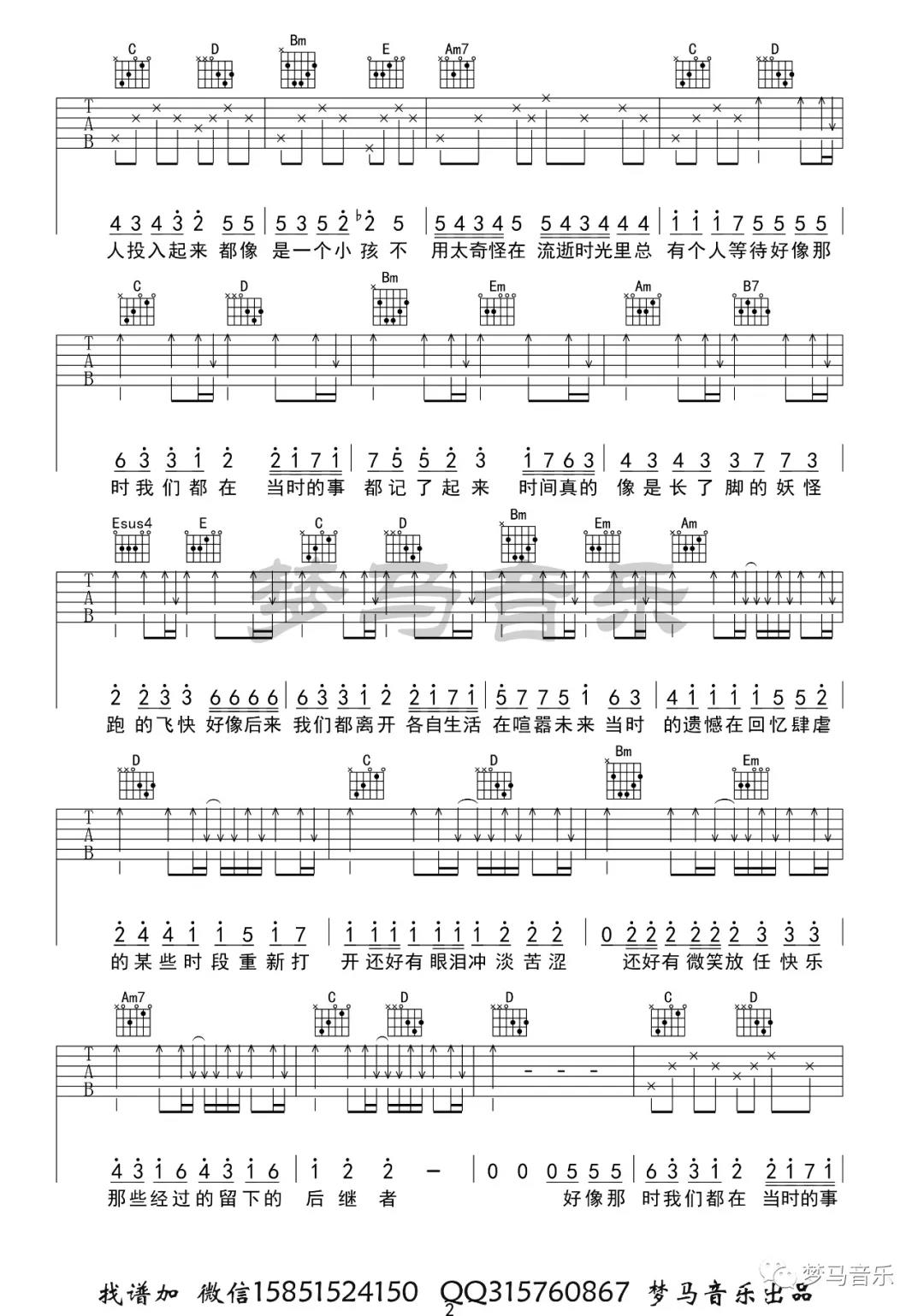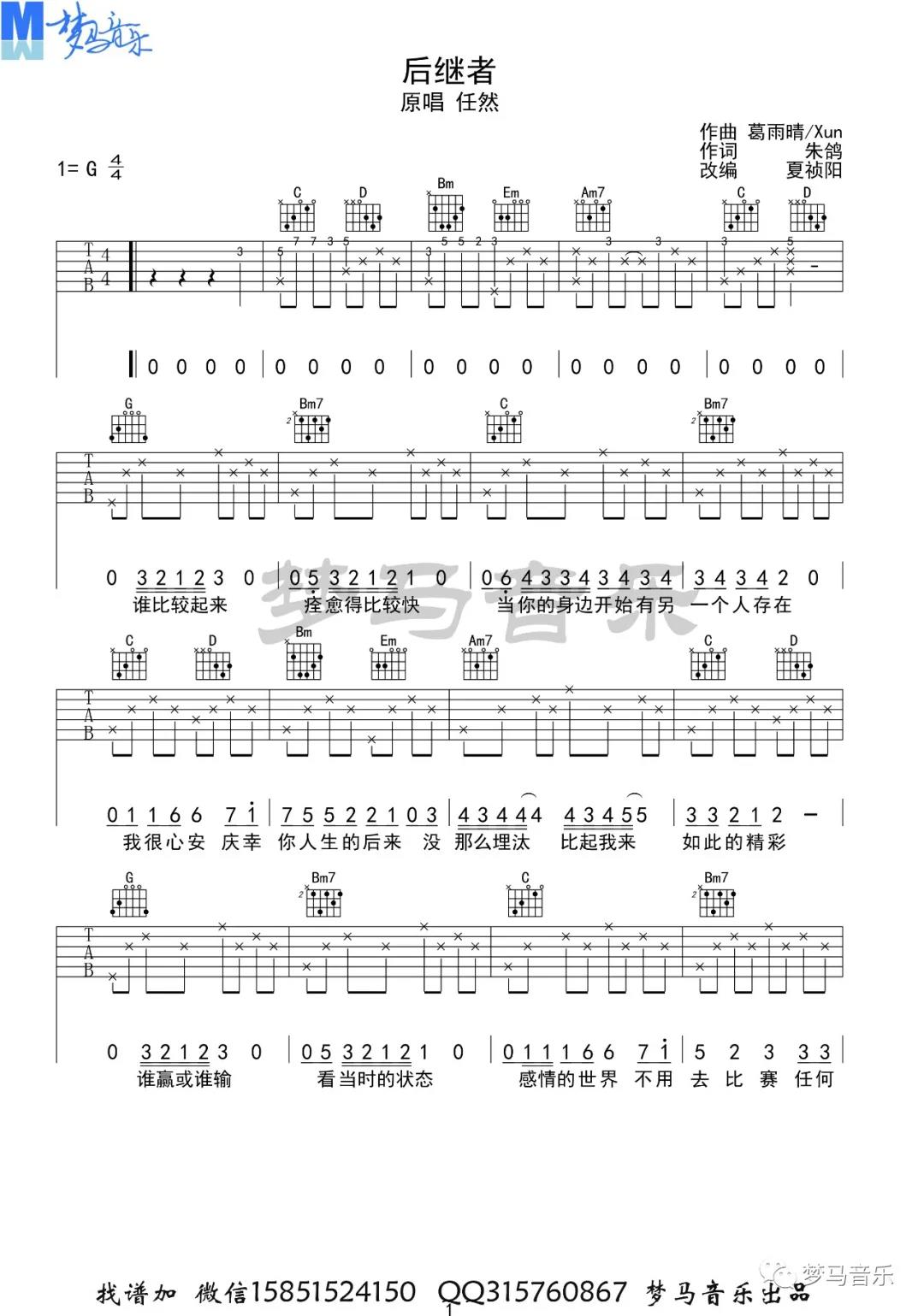 曲谱介绍: 任然《后继者》吉他弹唱谱,采用G调指法编配,共有3张高清图谱。