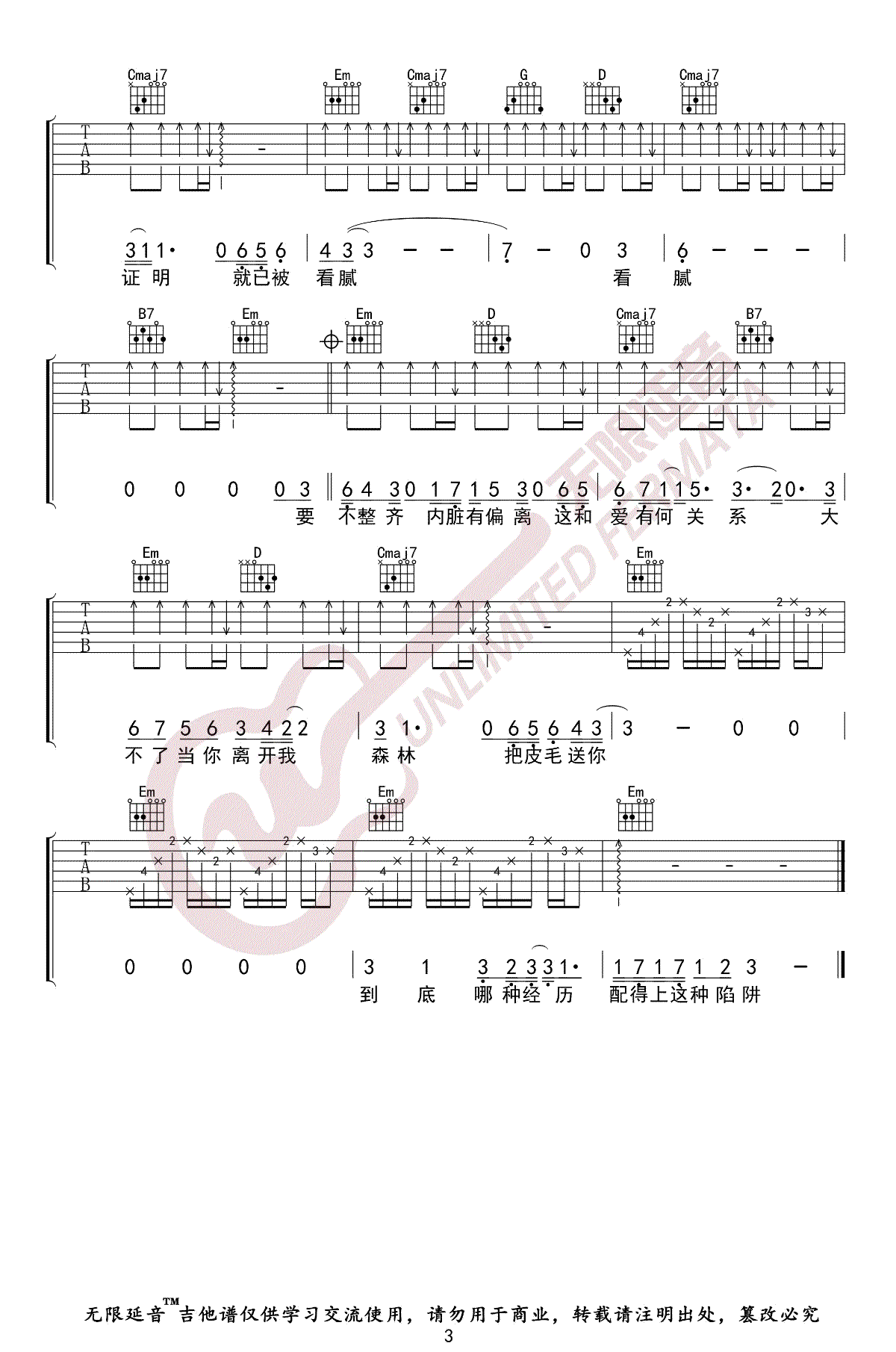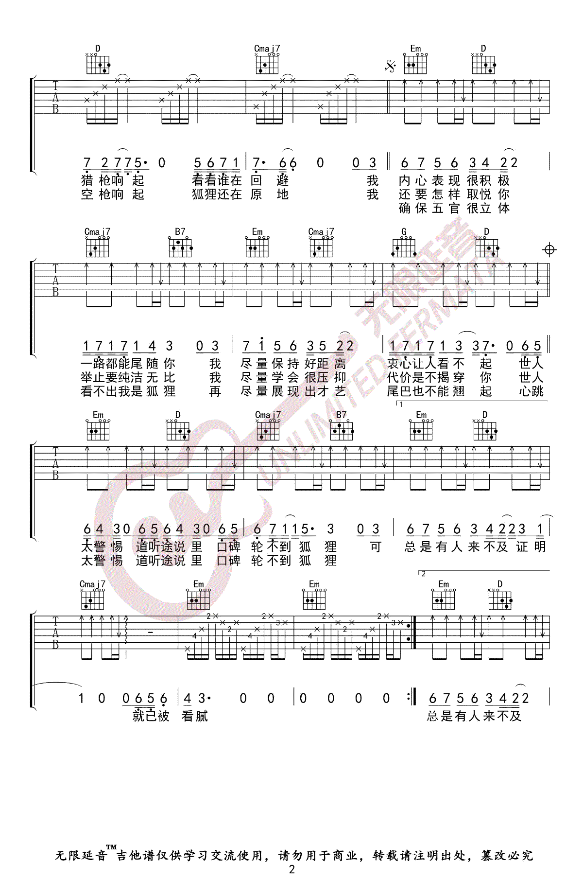 曲谱介绍: 薛之谦《狐狸》吉他弹唱谱,采用G调指法编配,共有3张高清图谱。