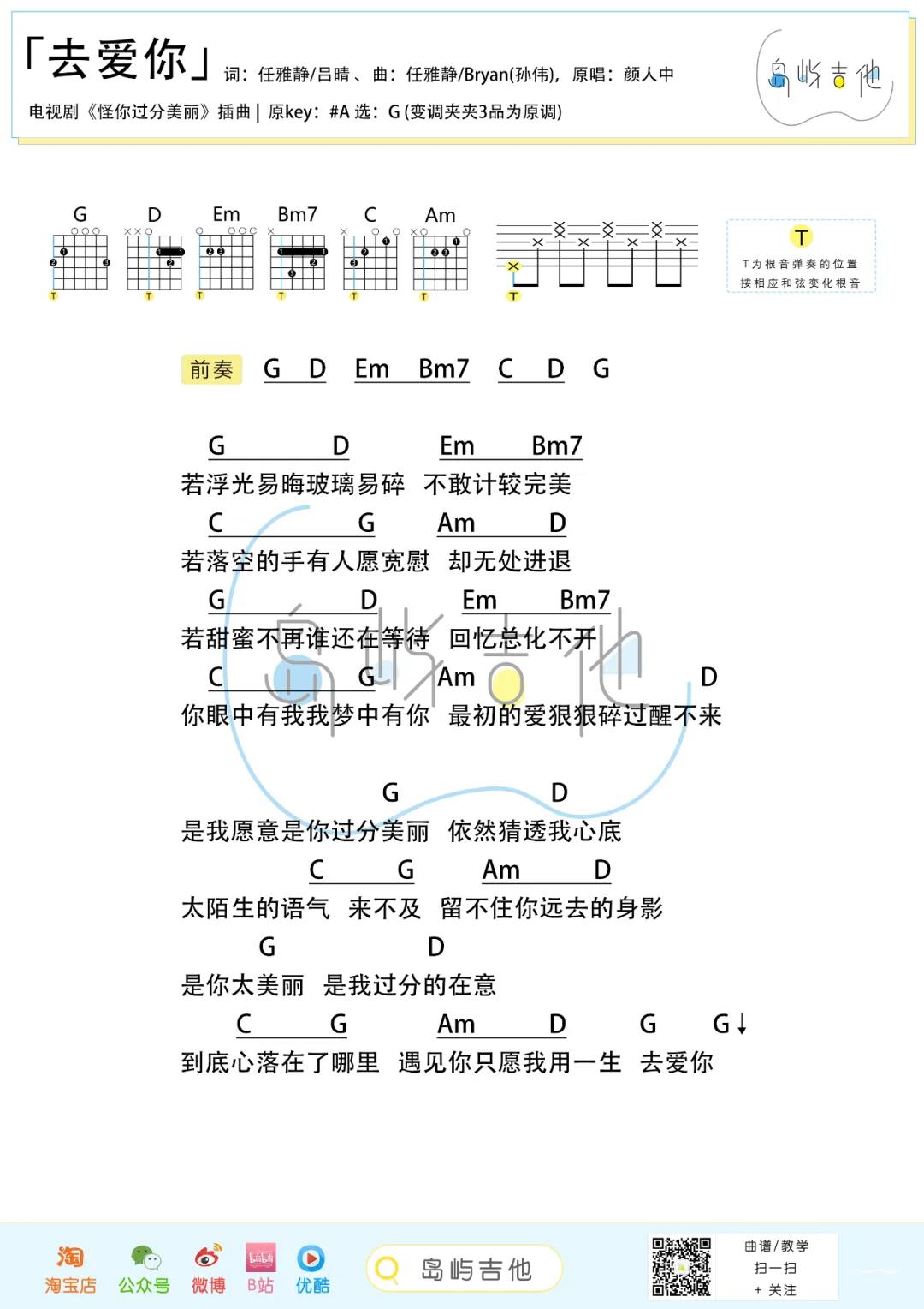 去爱你吉他谱 - 颜人中 - G调吉他弹唱谱
