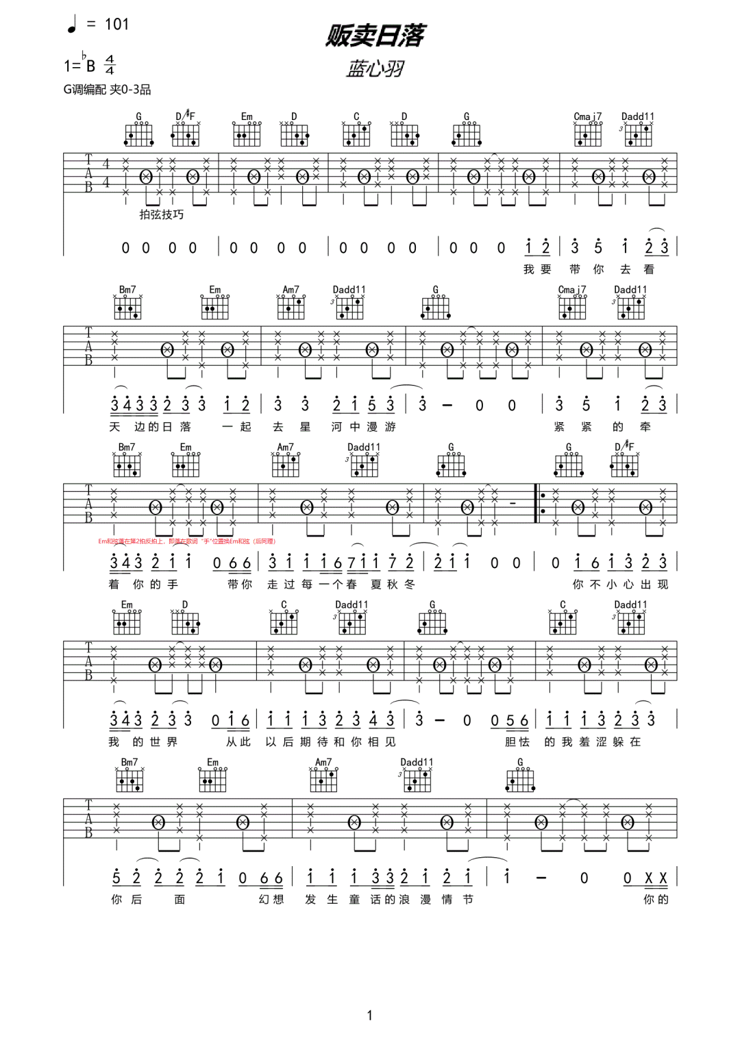 贩卖日落吉他谱 - 蓝心羽 - G调吉他弹唱谱 - 原版