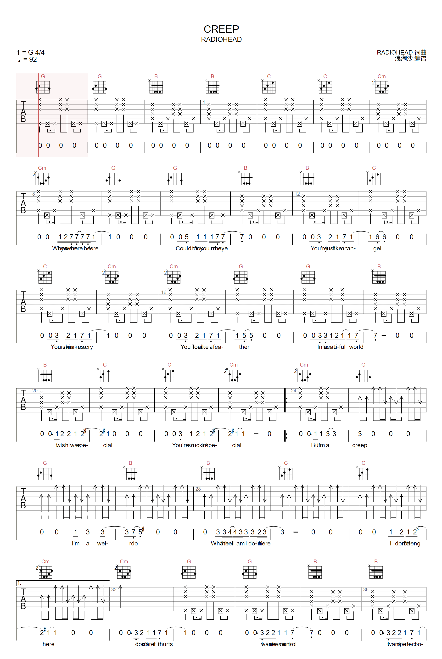 Creep吉他谱 - Radiohead - G调吉他弹唱谱