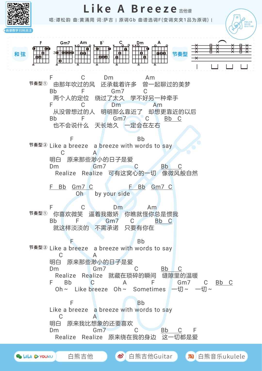 Like A Breeze吉他谱 - 谭松韵 - F调吉他弹唱谱