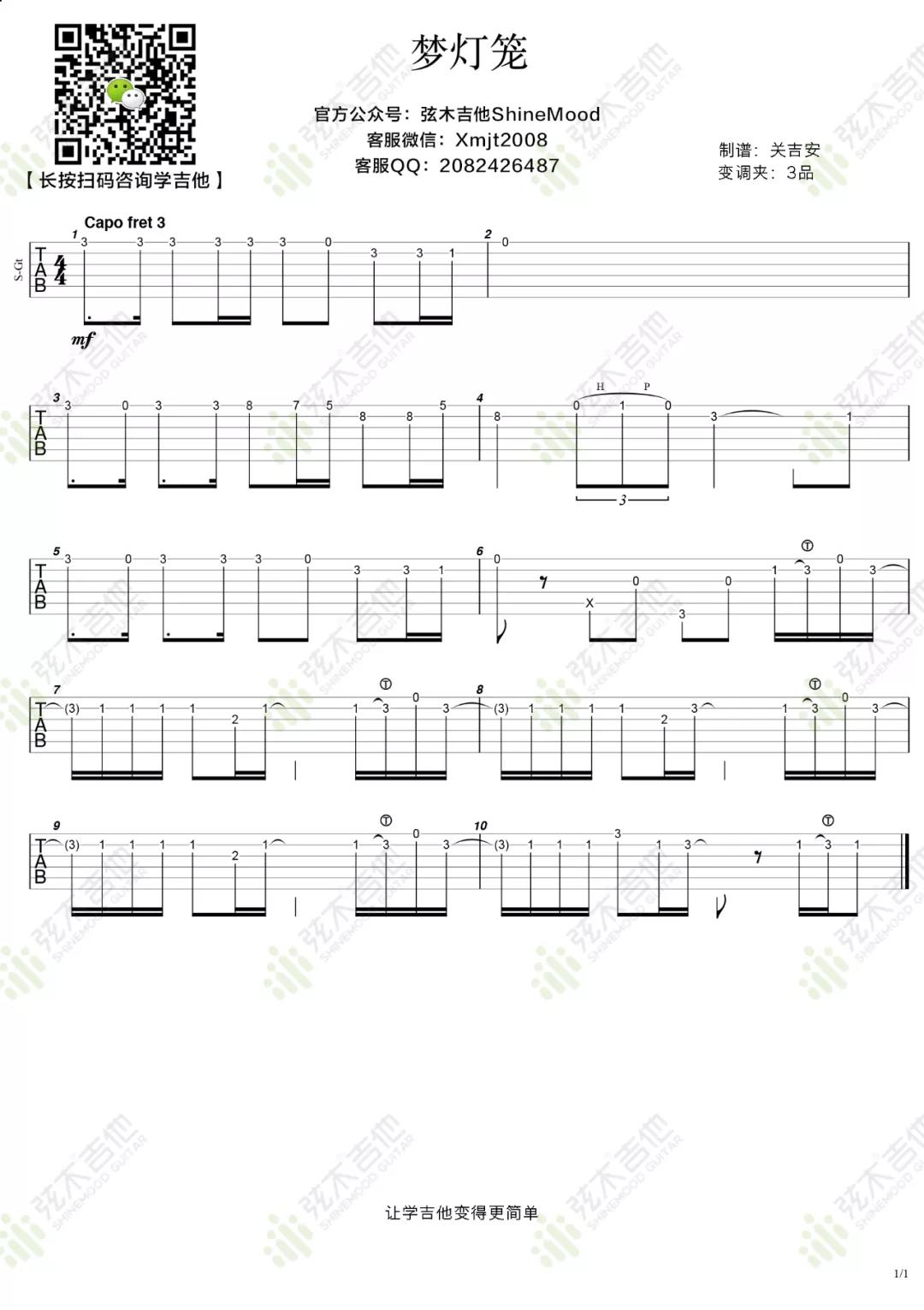 当前位置:琴谱网>吉他独奏>梦灯笼()