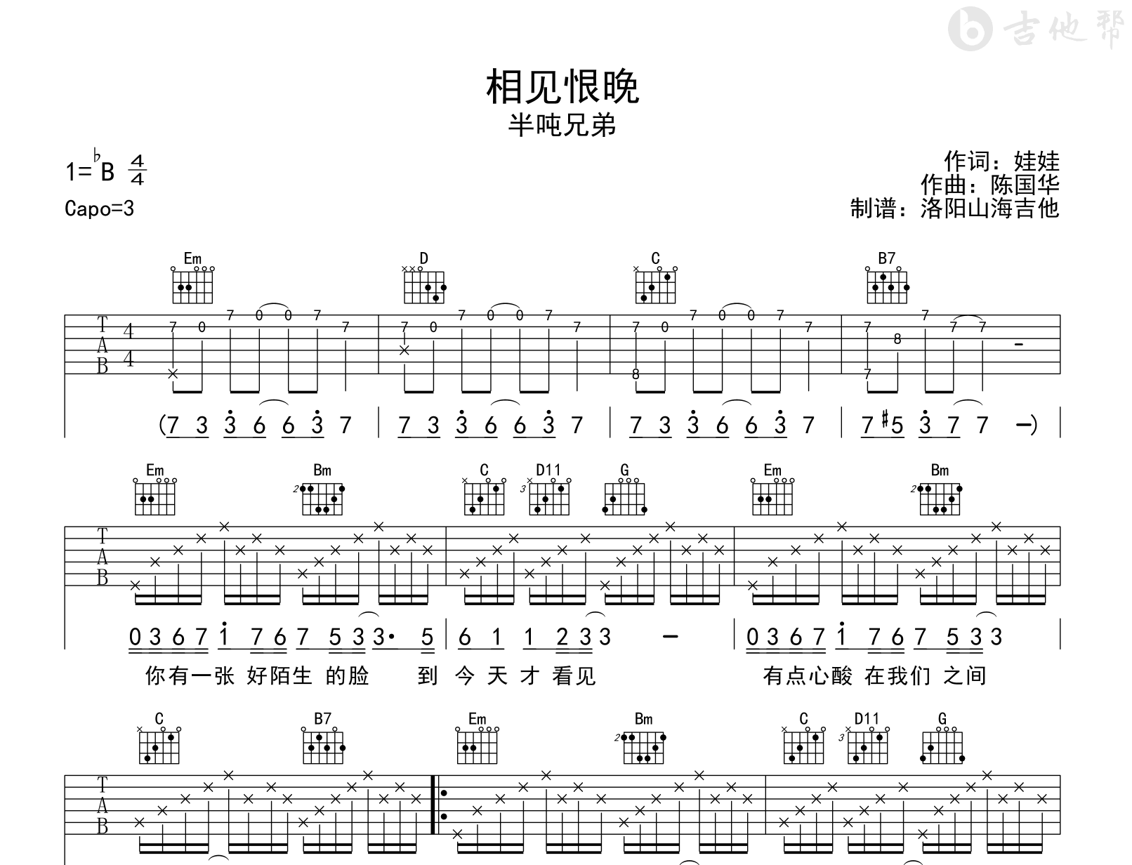 相见恨晚吉他谱 - 半吨兄弟 - G调吉他弹唱谱