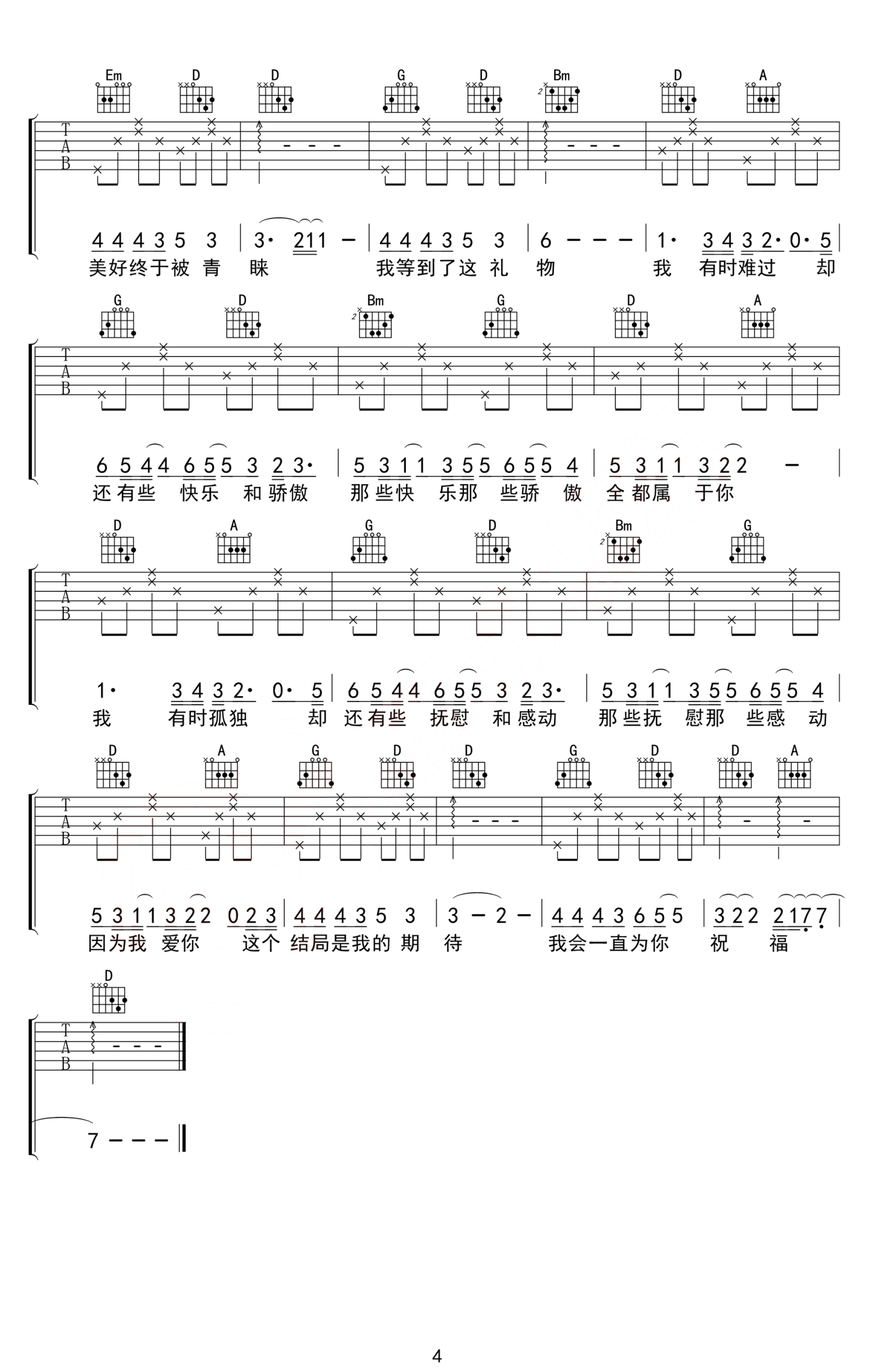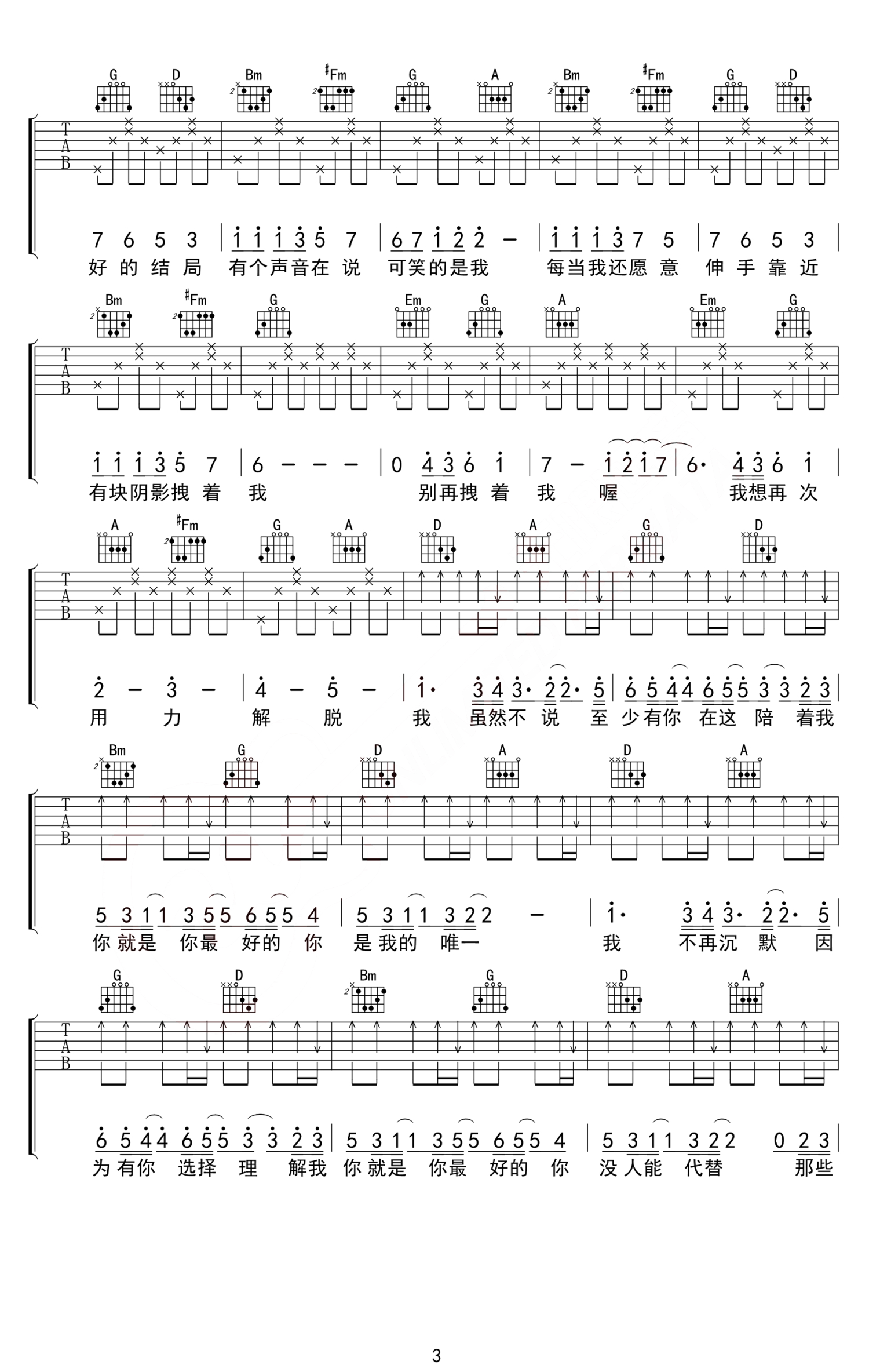 吉他弹唱D调来源:无限延音1812 浏览2019-11-25 17:56发布图谱共4页